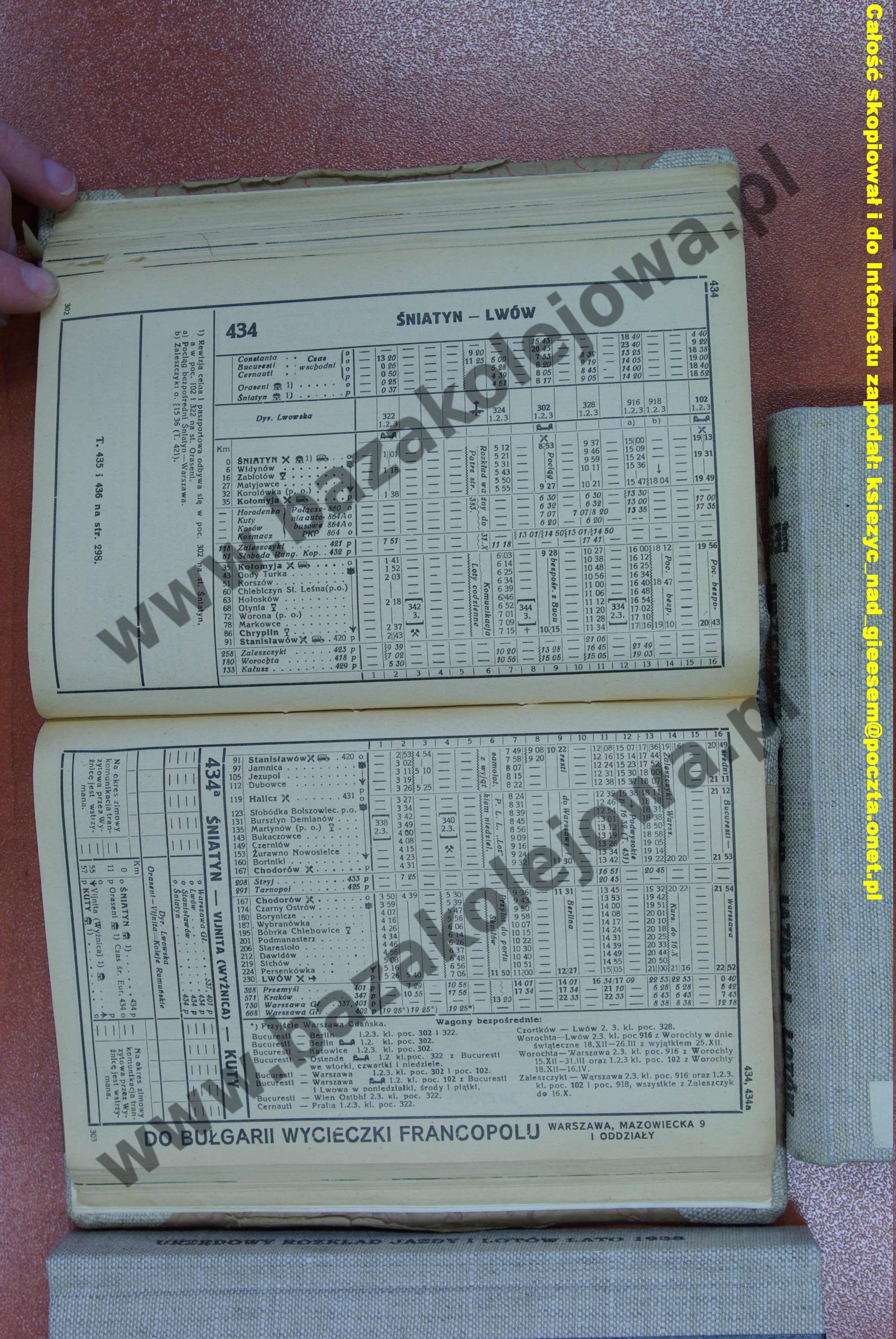 Tab. 434: Lwów – Śniatyn (RJP: Polska, zima 1938/1939)