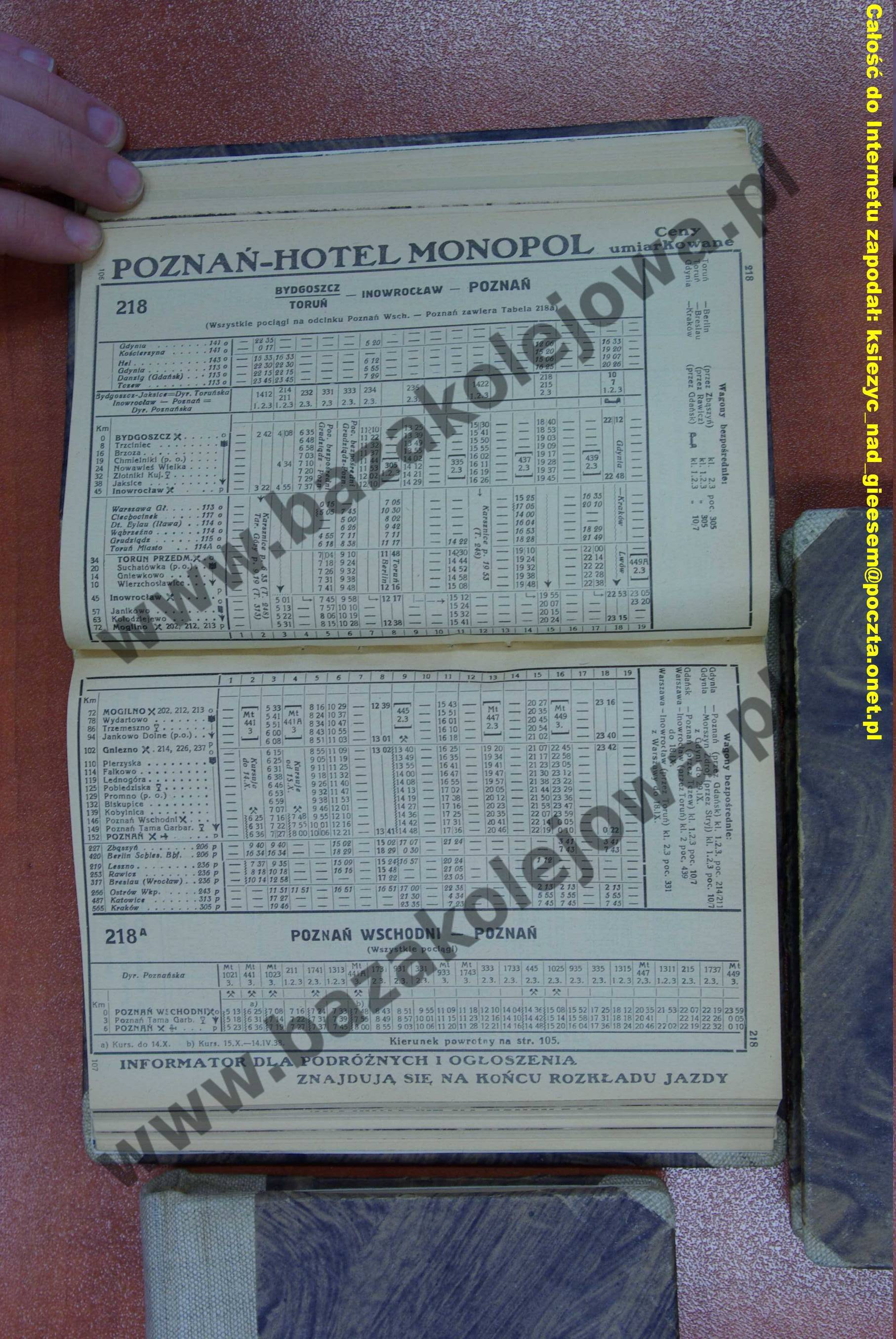 Tab. 218: Poznań – Inowrocław – Bydgoszcz/Trouń (RJP: Polska, jesień 1937)