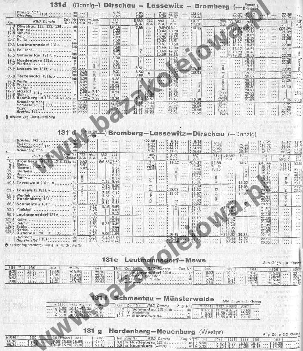 Tab. 131d: (Danzig –) Dirschau – Lassewitz – Bromberg (– Posen/Breslau) (RJP: III Rzesza 1944/1945, część 1)