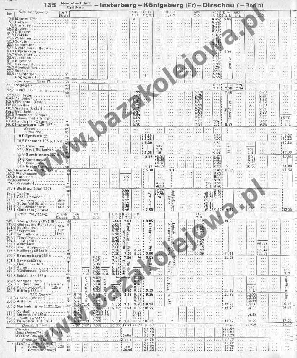 Tab. 135: (Memel – Tilsit)/Eydtkau – Insterburg – Königsberg (pr) – Dirschau (– Berlin) (RJP: III Rzesza 1944/1945, część 1)