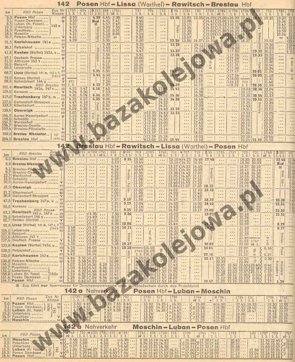 Tab. 142: Posen Hbf – Lissa (Warthel) – Rawitsch – Breslau Hbf (RJP: III Rzesza 1944/1945, część 1)