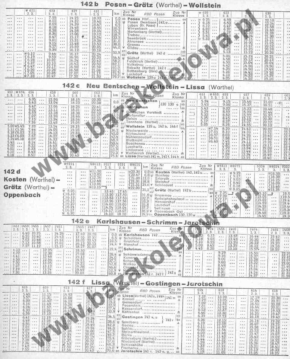 Tabela 142c: Neu Bentschen – Wollstein – Lissa (Warthel)