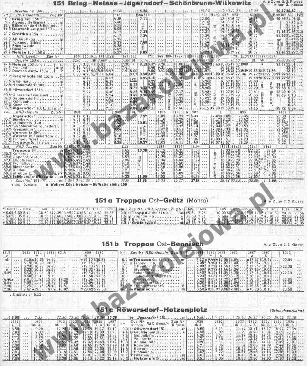 Tab. 151: Brieg – Niesse – Jägerndorf – Schönbrunn – Witkowitz (RJP: III Rzesza 1944/1945, część 1)