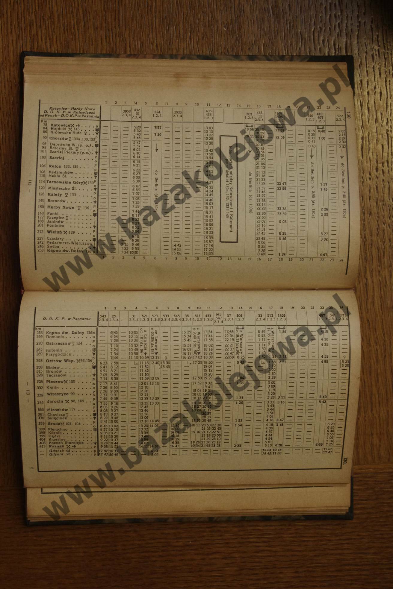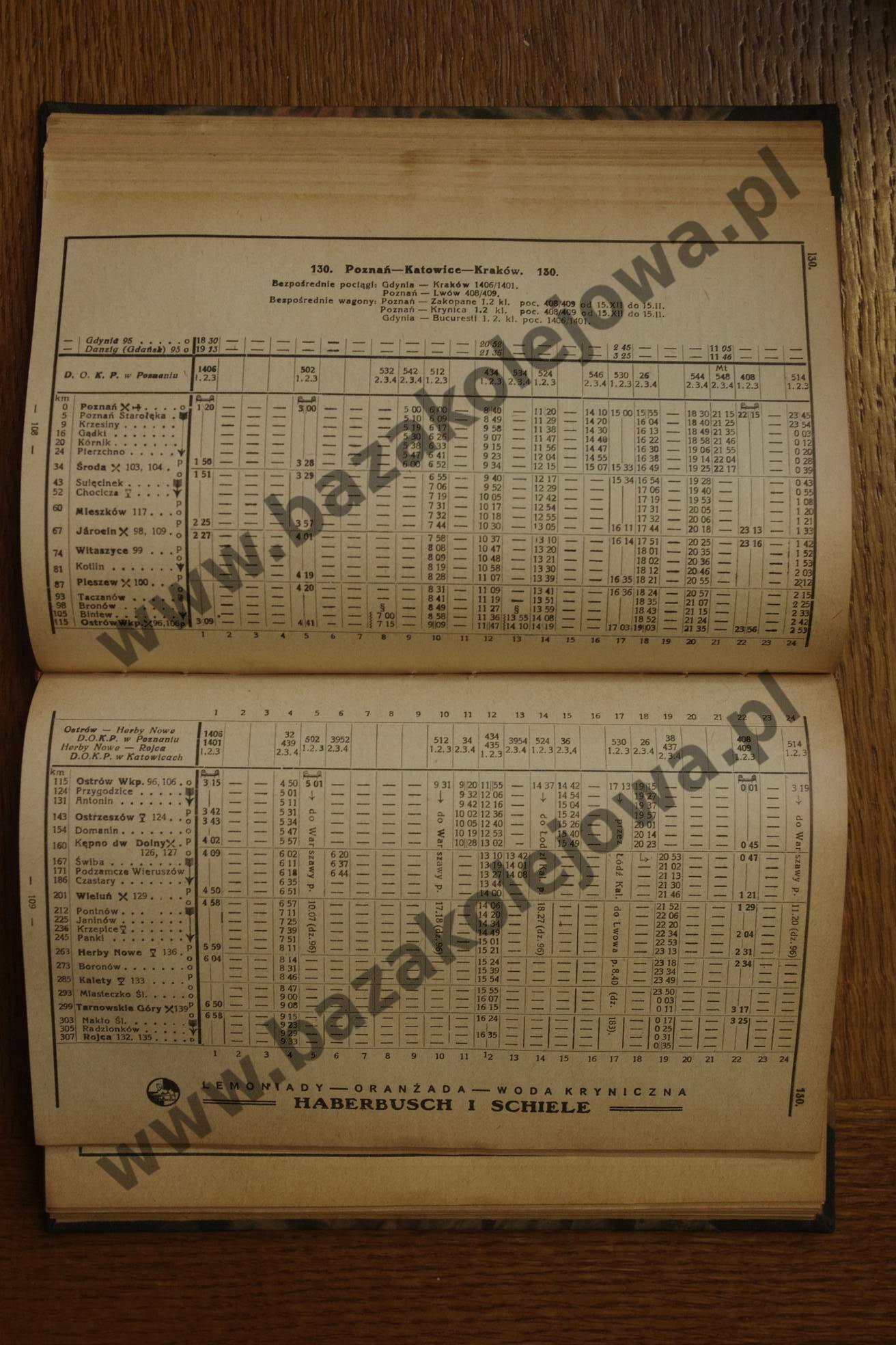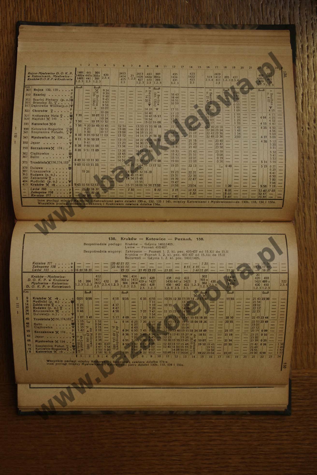 Tab. 130: Poznań – Katowice – Kraków (RJP: Polska, zima 1930/1931)