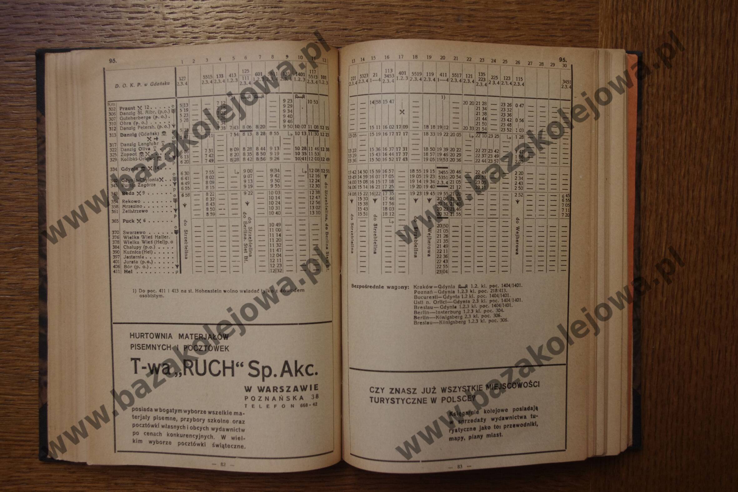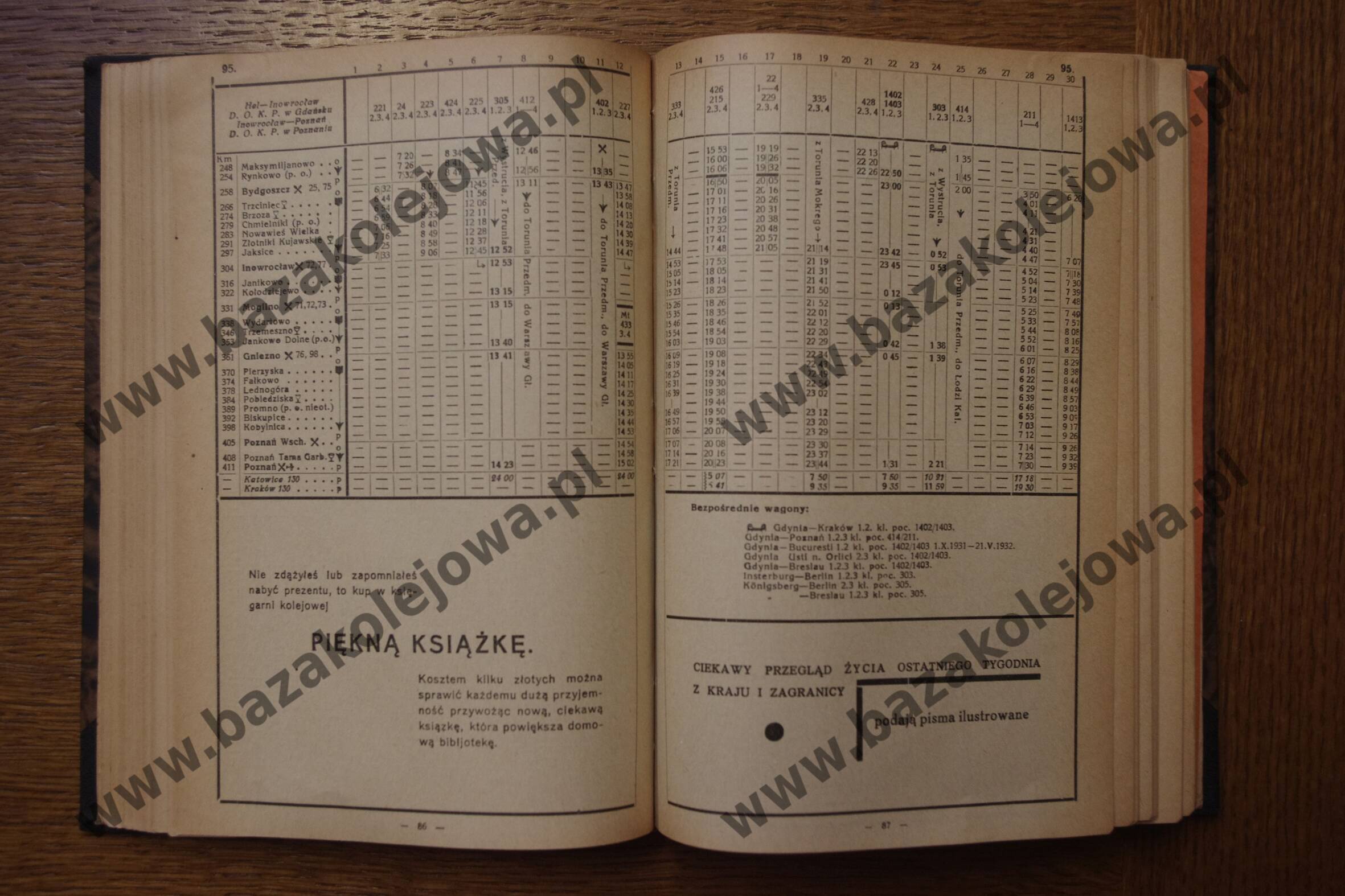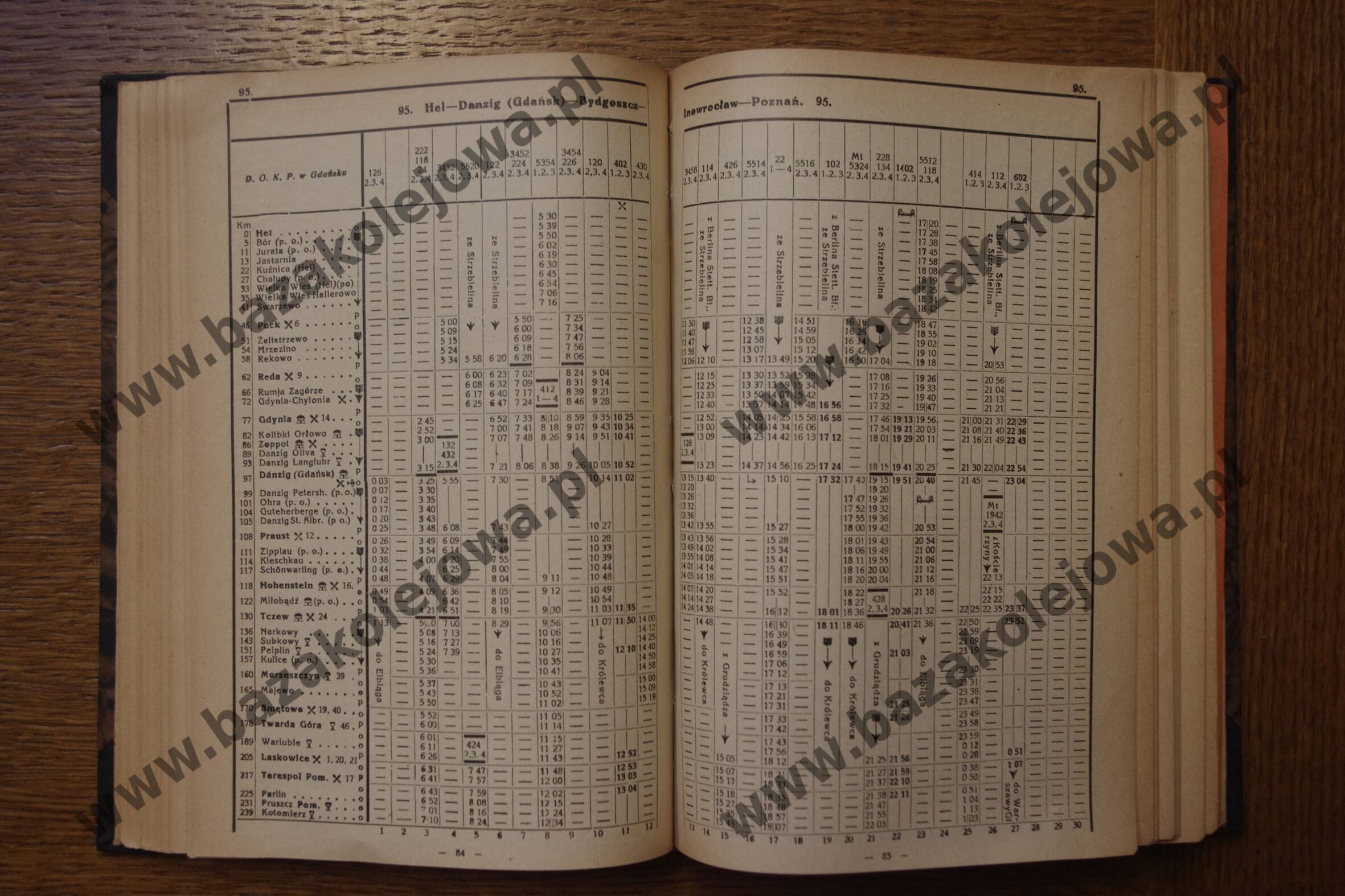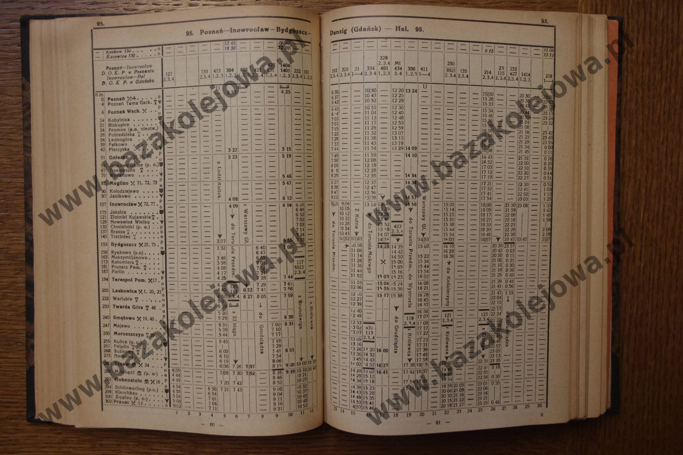 Tab. 95: Poznań – Inowrocław – Bydgoszcz – Danzig (Gdańsk) – Hel (RJP: Polska, zima 1931/1932)