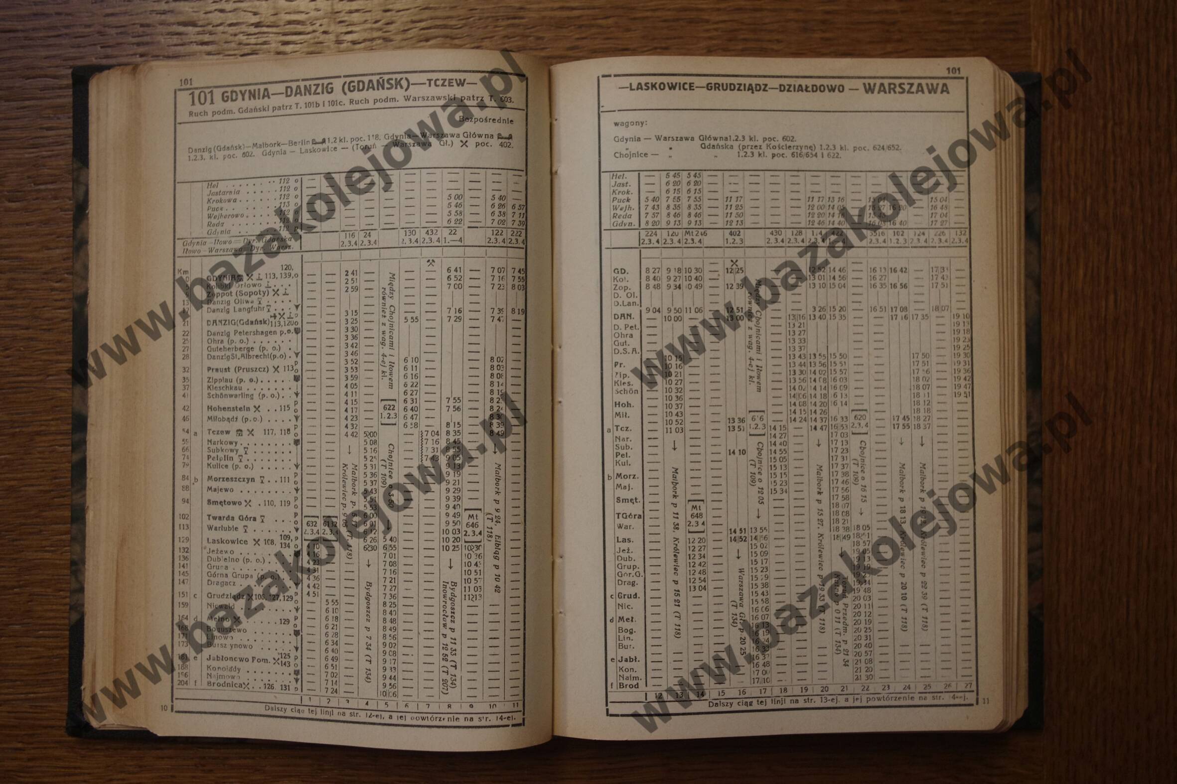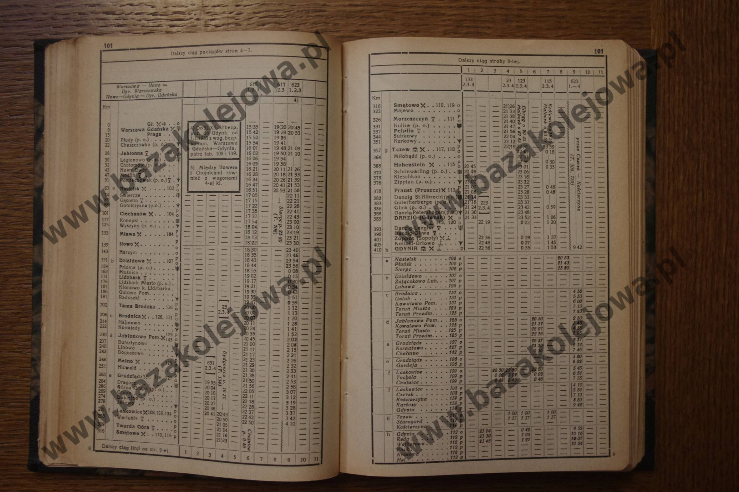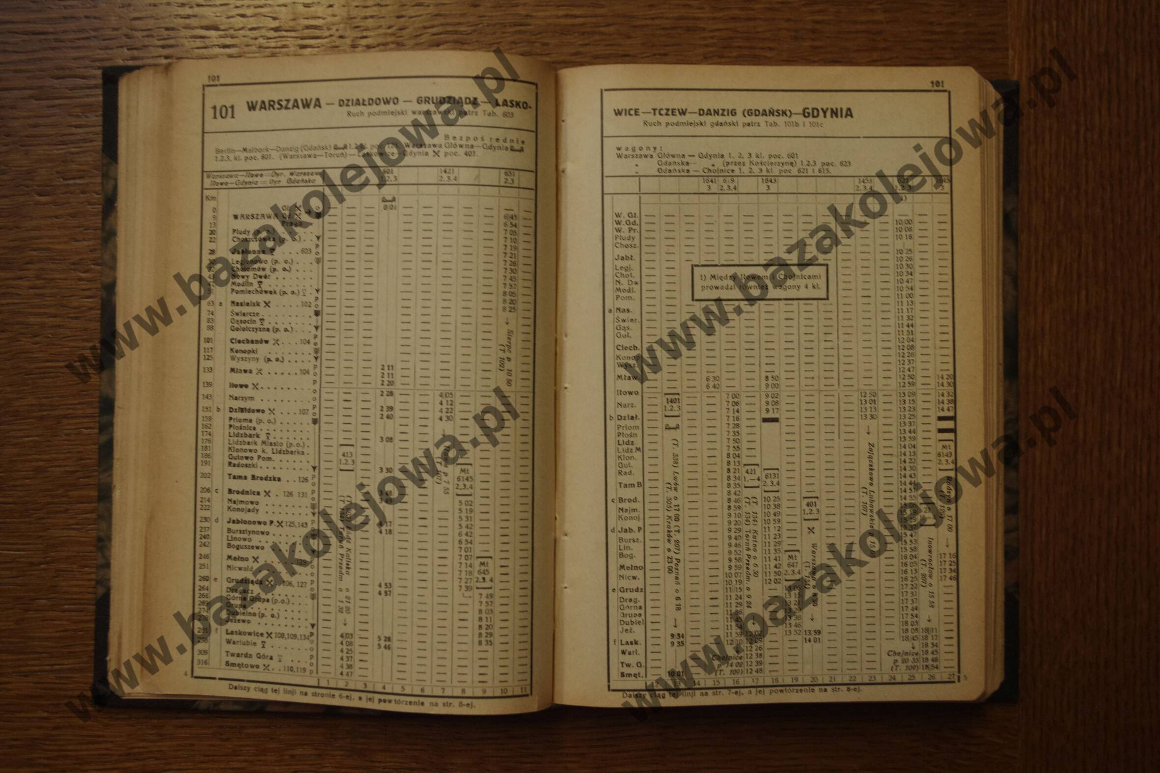 Tab. 101: Warszawa – Działdowo – Grudziądz – Laskowice – Tczew – Danzig (Gdańsk) – Gdynia (RJP: Polska, zima 1932/1933)