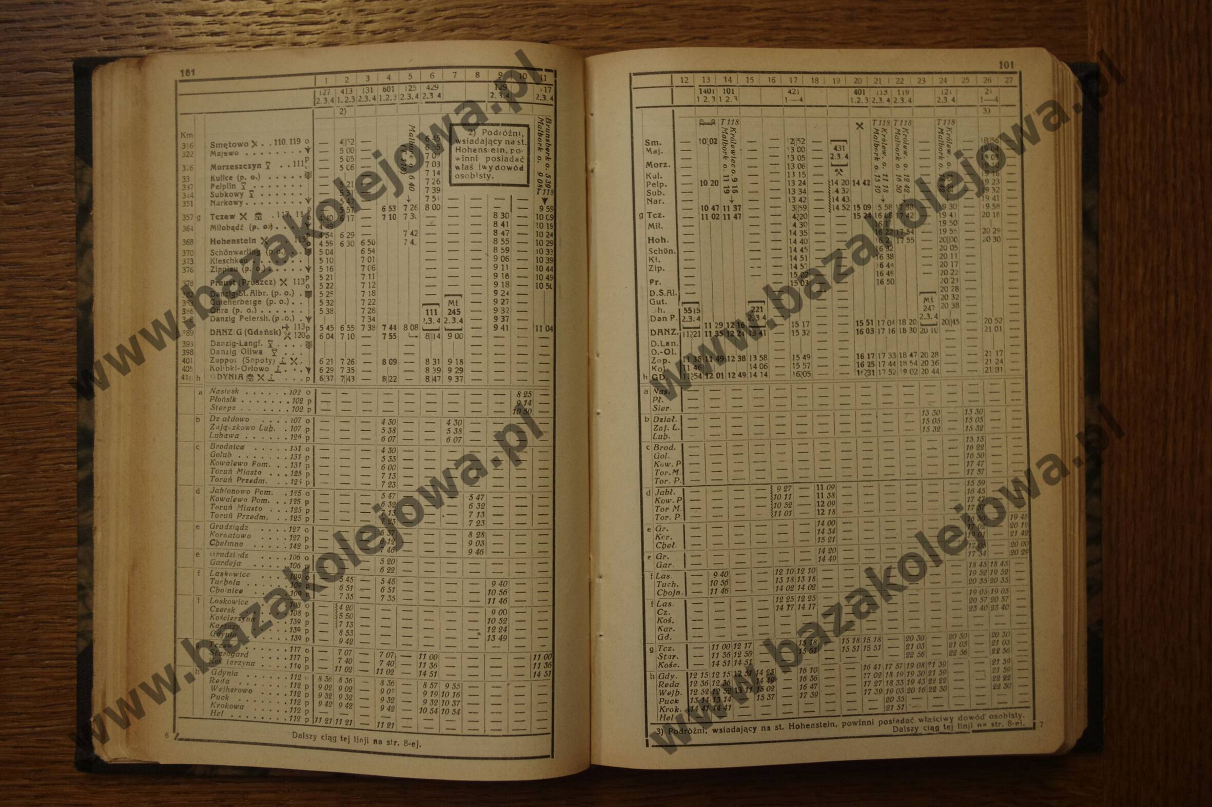 Tabela 101: Warszawa – Działdowo – Grudziądz – Laskowice – Tczew – Danzig (Gdańsk) – Gdynia