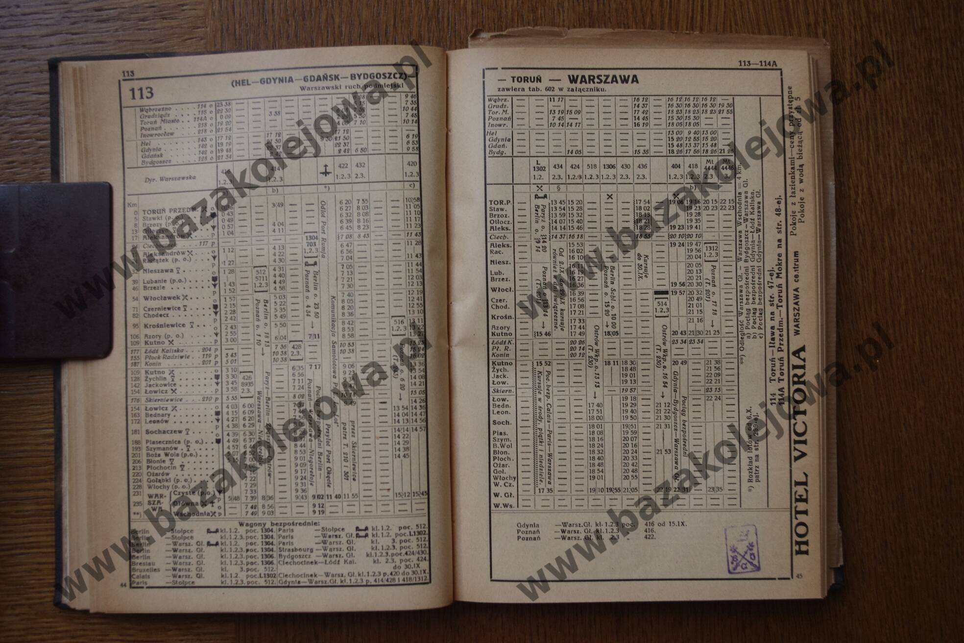 Tab. 113: Warszawa – Toruń Przedmieście – (Bydgoszcz – Gdańsk – Gdynia – Hel) (RJP: Polska, jesień 1935)