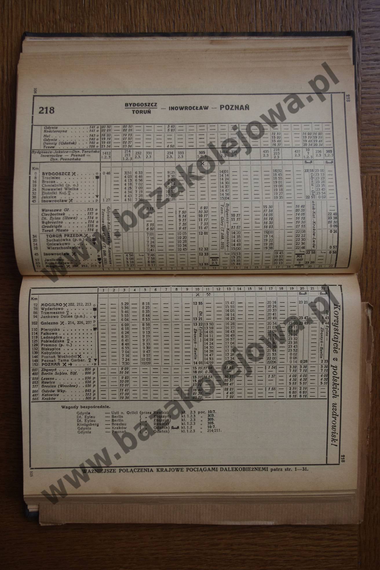 Tab. 218: Poznań – Inowrocław – Bydgoszcz/Trouń (RJP: Polska, jesień 1935)