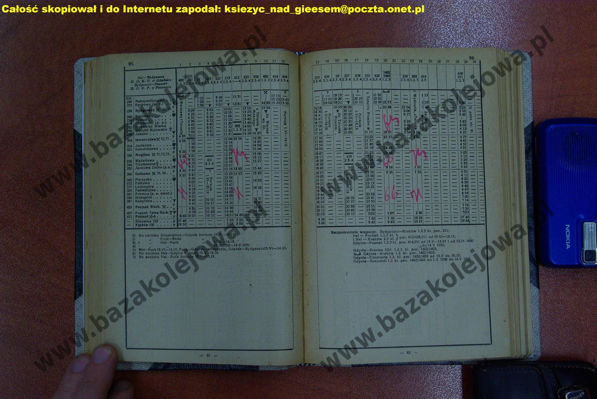 Tab. 95: Poznań – Inowrocław – Bydgoszcz – Danzig (Gdańsk) – Gdynia – Hel (RJP: Polska, lato 1930)