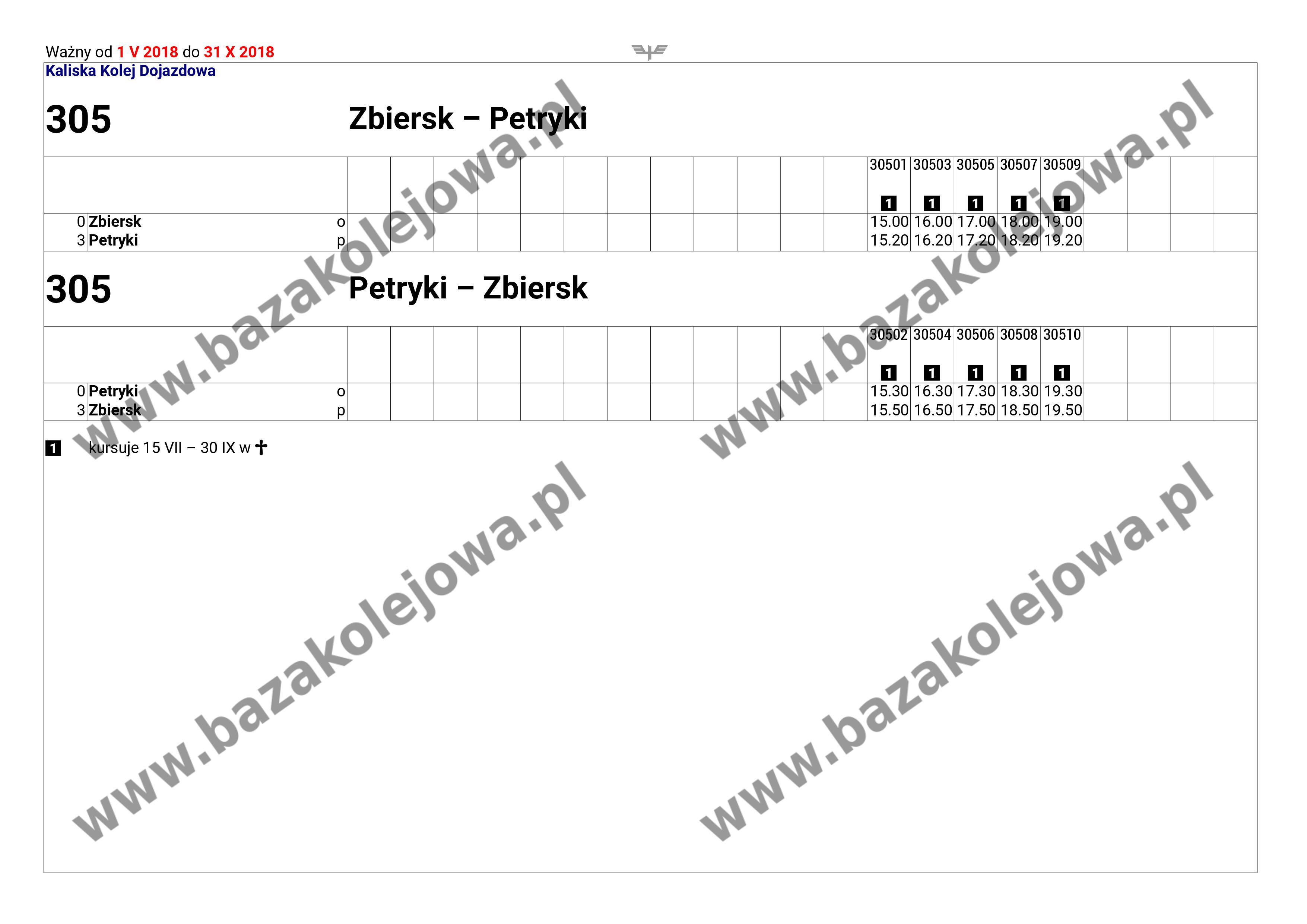 Tab. 305: Zbiersk – Petryki (RJP: Sieciowy rozkład jazdy pociągów wąskotorowych, lato 2018)