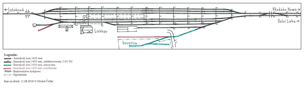 Lichkov. Z lewej peron 2. Widok w kierunku wschodnim: Międzylesie/Kłodzko, Dolna Lipka.