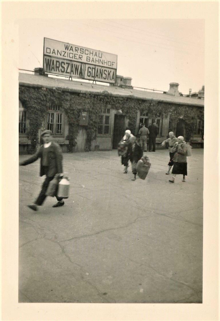 Dodam jeszcze, że na fotografiach z 1941 i 1943, dostępnych np. na fotopolska.eu, nazwa dworca jest dwujęzyczna, a nawet to niemiecka nazwa zdaje się być doklejona.