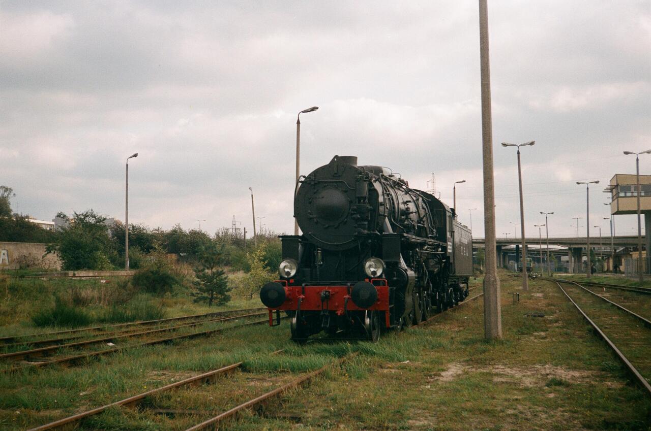 Gdynia Port GPB (km 207,146 linii nr 201 Nowa Wieś Wielka - Gdynia Port GPF) - parowóz Tr203-288 (po odbudowie w ZNTK Oleśnica - sprzedany w październiku 1992 roku Królewskiemu Muzeum Kolei w Yorku w Wielkiej Brytanii), oczekuje na ekspedycję drogą morską do nowego właściciela. Widoczny wiadukt ulicy Janka Wiśniewskiego nad torami odcinka Gdynia Port GPC - posterunek P-13, P-15. W lewo - kierunek Gdynia Port GPF, w prawo - kierunek Gdynia Główna Osobowa (Nowa Wieś Wielka).