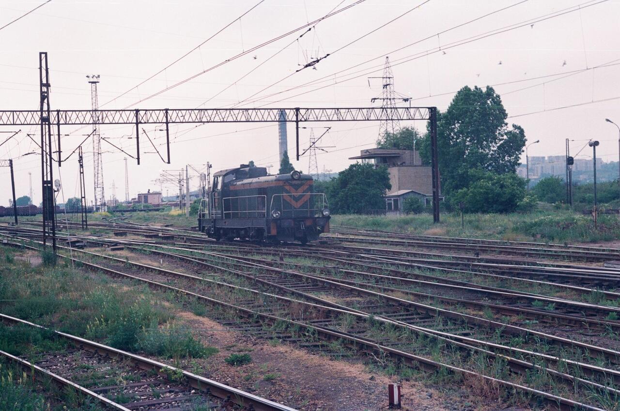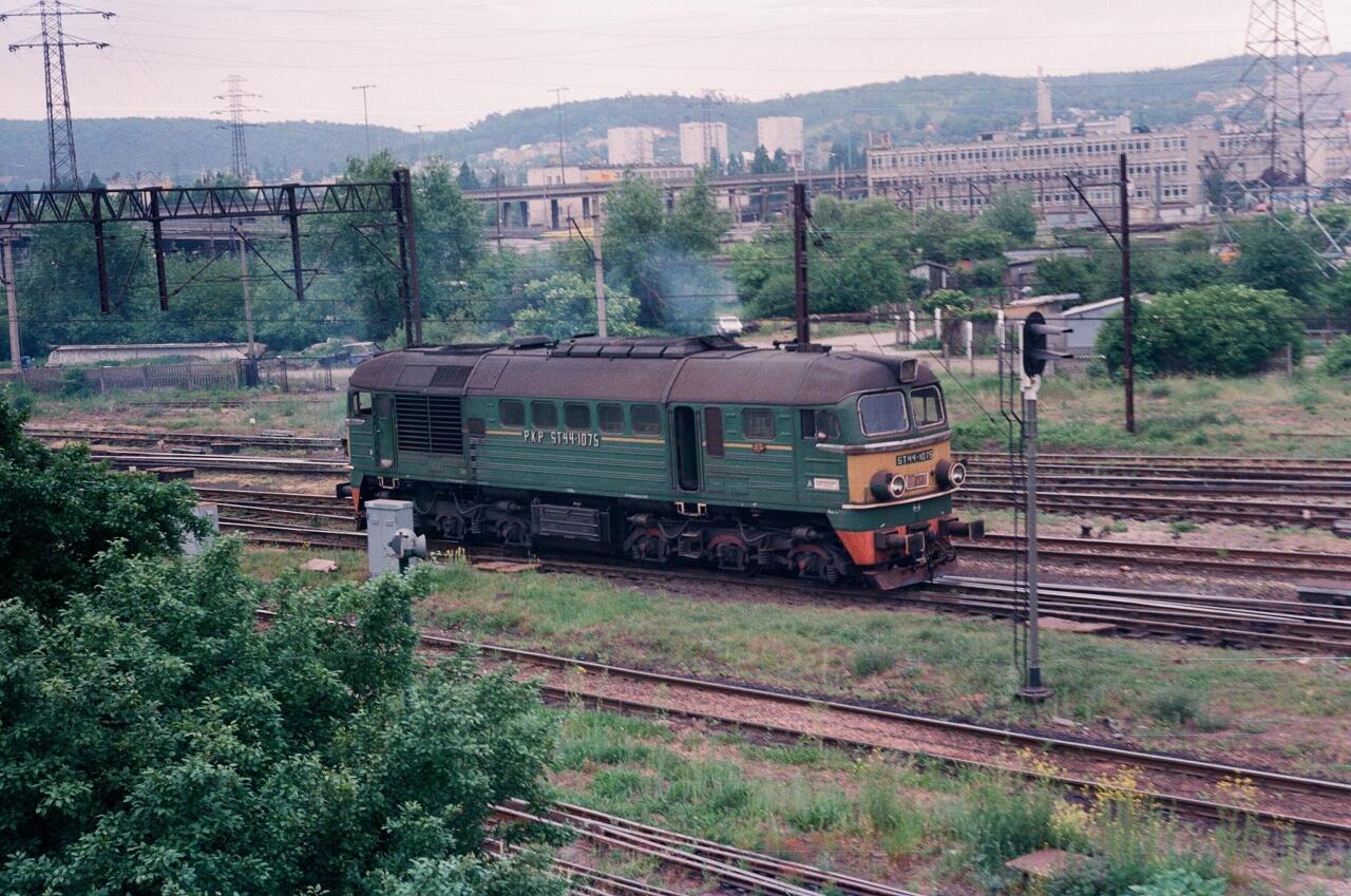 Stacja Gdynia Port GPC - lokomotywa ST44-1075 (MD Gdynia Grabówek) na manewrach stacyjnych. Na dalszym planie grupa torów kierunkowych (2-30), na których formowano pociągi (z drugiej strony w/w grupy torów istniała górka rozrządowa, obsługiwana z nastawni wykonawczej Gdynia Port GPD). Po odprawie technicznej i wykonaniu szczegółowej próby hamulca składy pociągów wyciągano lokomotywami manewrowymi na posterunek (nastawnia dysponująca) Gdynia Port GPW, gdzie po dojechaniu lokomotywy pociągowej, uproszczonej próbie hamulca pociąg towarowy wyruszał w trasę. Widok w kierunku stacji Gdynia Port GPF.