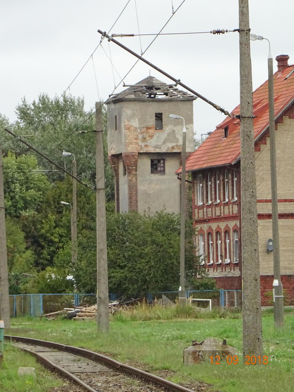 | wieża wodna: | 2010-05: Kwadratowa wieża wodna stoi między ulicami Duńską i Dworcową, ok. 450 m. w kierunku południowo - zachodnim (końca torów). (info: Bolesław Wojtyniak). | |