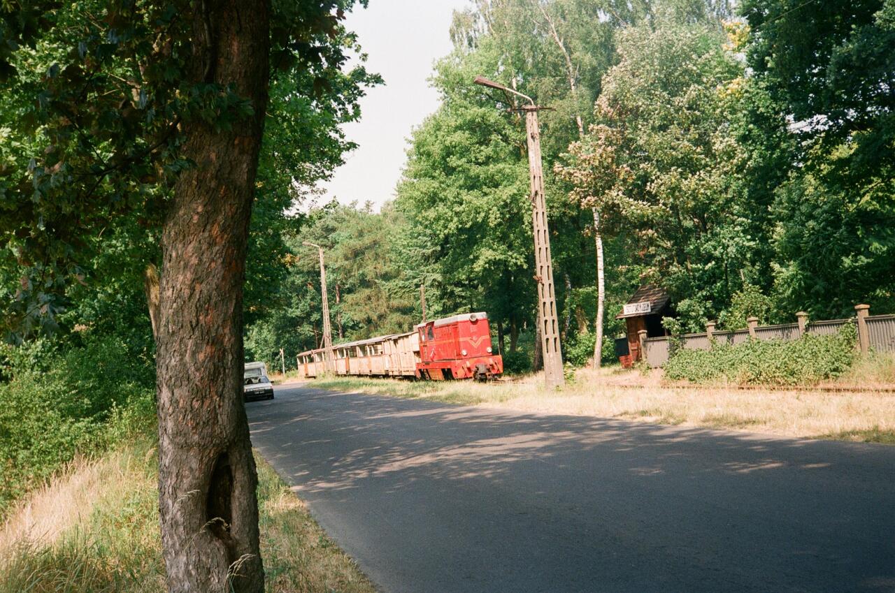 Przystanek zlokalizowany tuż przy byłym niemieckim obozie zagłady Stutthof. Skromna infrastruktura: wiata drewniana z nazwą punktu, ławka będąca częścią pomniku i chodnik (peron) z płyt. Obok przejazd kolejowo-drogowy przez ulicę Muzealną. |