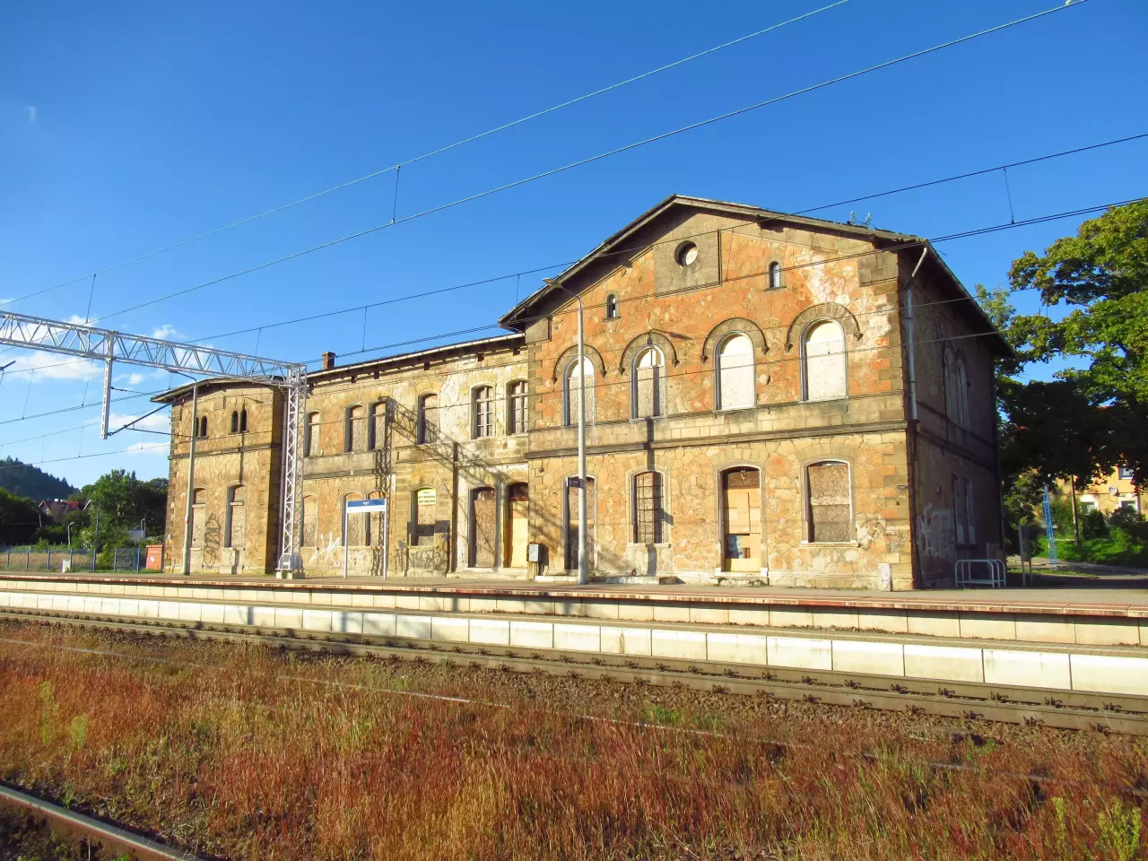 Opis ogólny: Jest to najwyżej położona stacja na całej linii. Opis infrastruktury: drugi peron ziemny. Możliwe, że istnieje tam peron trzeci (także ziemny, dodatkowo drewniana krawędź), wykorzystywany przy (niekompletnym i zrobionym "na odwalonego") remoncie toru 2 na odcinku Boguszów Gorce Wschód - Wałbrzych Główny. (info: Marcin Czech, 21-04-2008) Peron 1 i 2 zostały wyremontowane. Peron 1 przylegający do budynku dworca jest obecnie wysokokrawędziowy. Od stacji odchodziła bocznica do zakładu wzbogacania rudy barytowej. Zakład i tor do niego nieczynne mniej więcej od początku XXI wieku. (info: wasiukibic, 4 VII 2015) Opis budynków: Kasa i poczekalnia zamknięta latem 2006. Dół budynku zamknięty na głucho, na górze mieszkania. Dworzec kolejowy jest całkowicie opuszczony po wyprowadzce ostatnich lokatorów mieszkających na pietrze. Niegdyś w bocznej części budynku mieściła się hurtownia - taki przynajmniej widnieje napis na szyldzie. Ruchem na stacji steruje jedna, centralna nastawnia zlokalizowana na wschód od wiaduktu kolejowego nad ul. Dworcową. Dawna nastawnia znajduje się na zachód od tego wiaduktu. (info: wasiukibic, 4 VII 2015) |