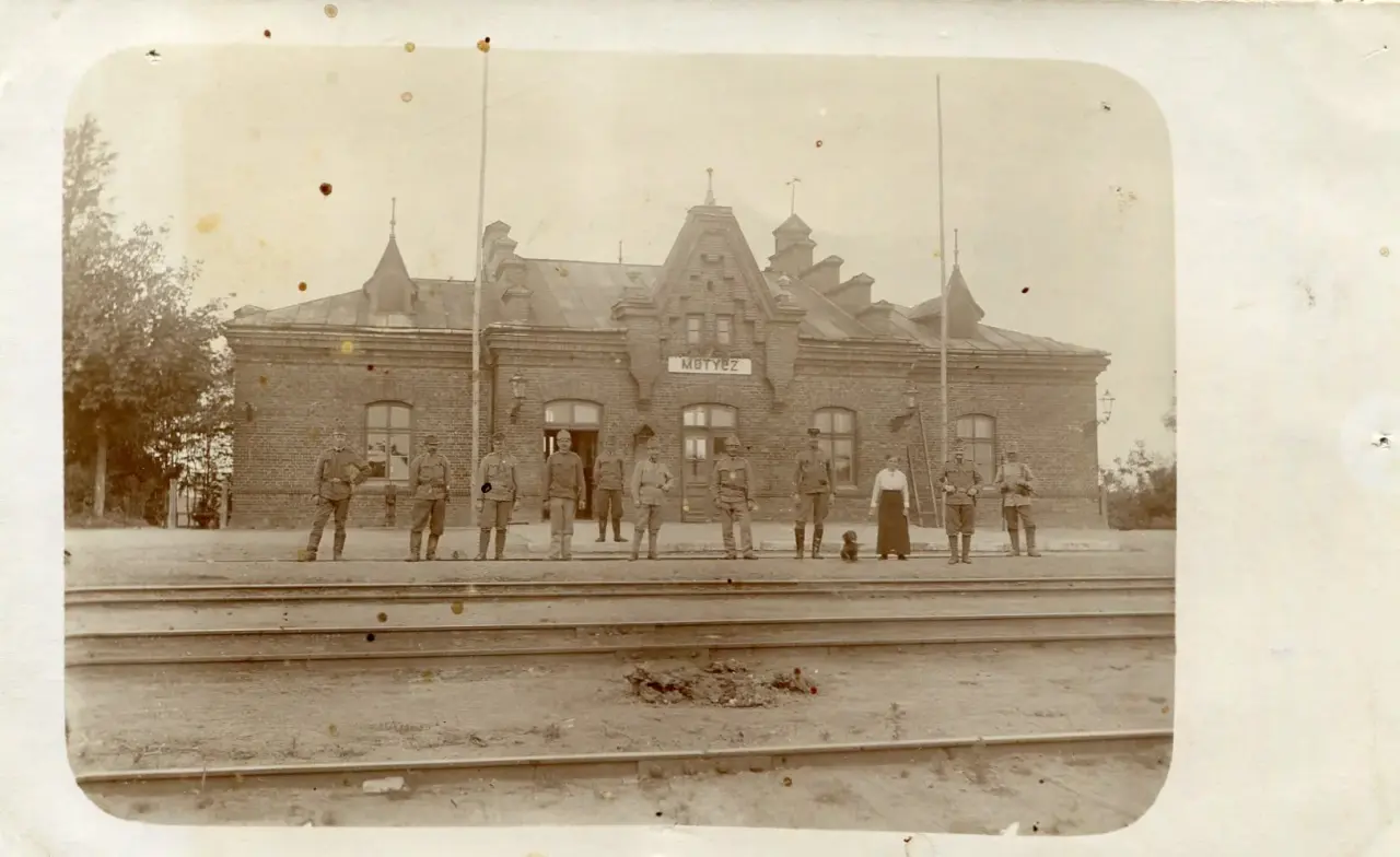 Zdjęcie zakupione na jednej z aukcji z 1916 roku, w tle budynek dworca.