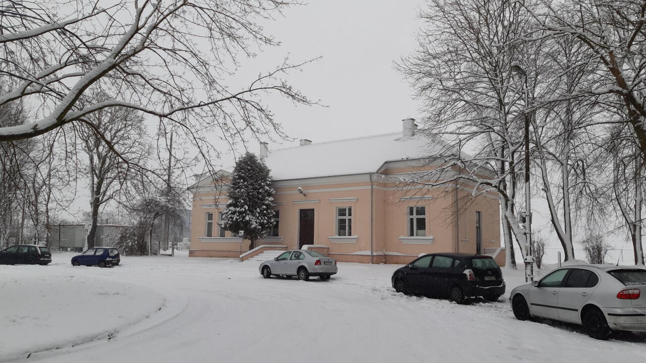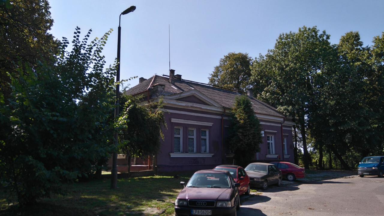 Budynek dworcowy. Widok z pociągu relacji Lublin - Parczew Kolejowa, od strony wjazdu z Lublina.