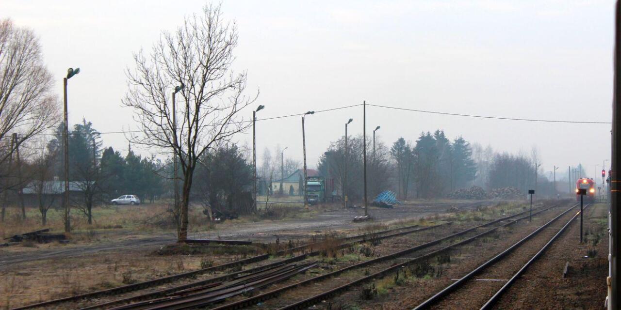 Z lewej magazyn towarowy z rampą przeładunkową. Wylot w stronę Łukowa.