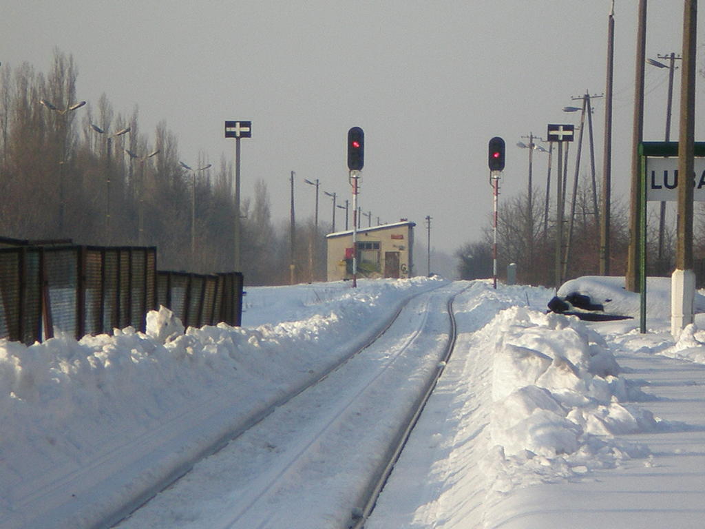 Widok z peronu 2. w stronę Łukowa, widoczne semafory wyjazdowe i budynek byłej Nastawni Wykonawczej Lu1.