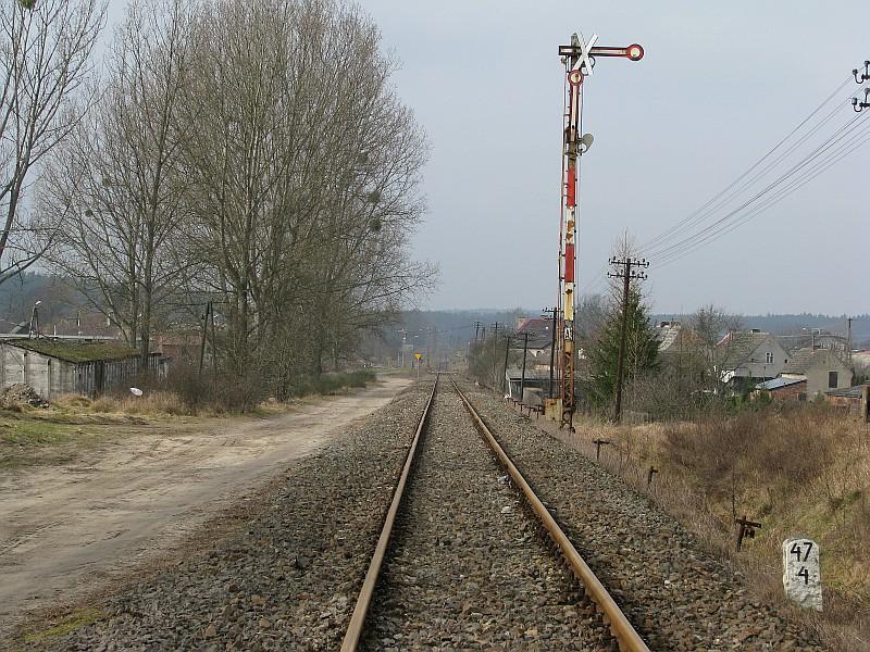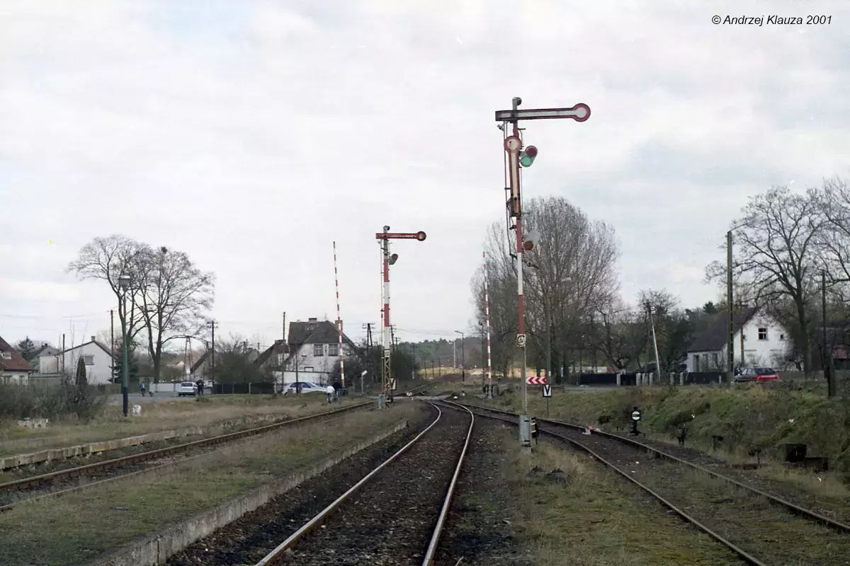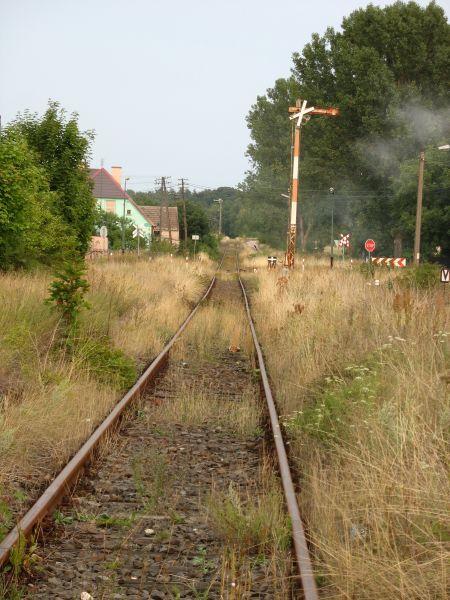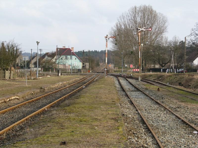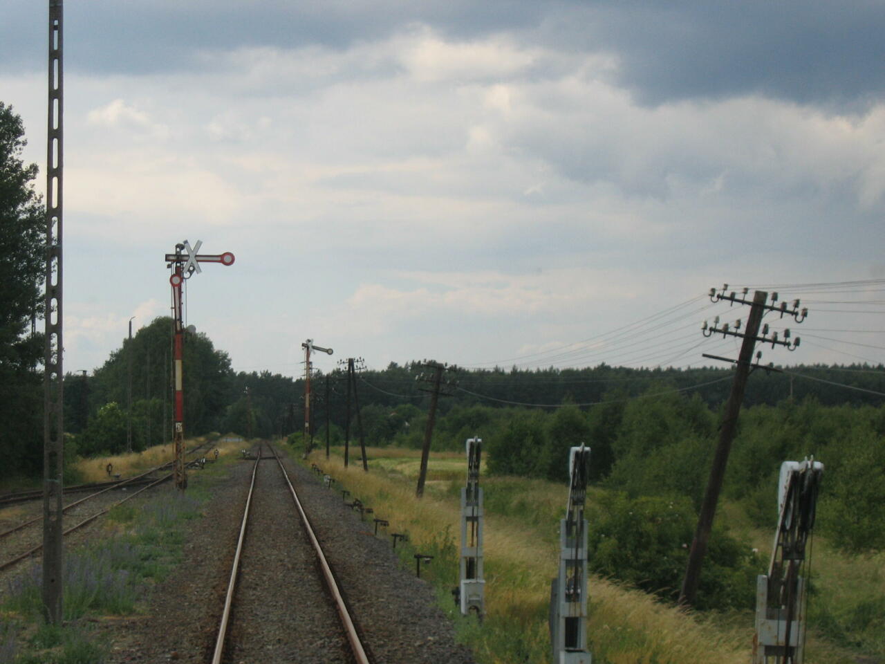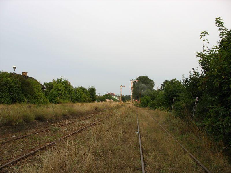 Widok w kierunku Sulęcina. W oddali semafory wyjazdowe.