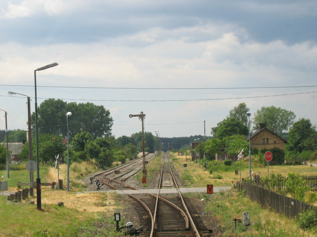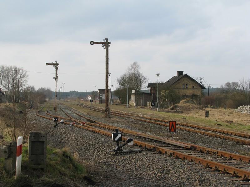 Widok na stację w Trzemesznie Lubuskim spod semafora wjazdowego A (z kierunku Międzyrzecza).