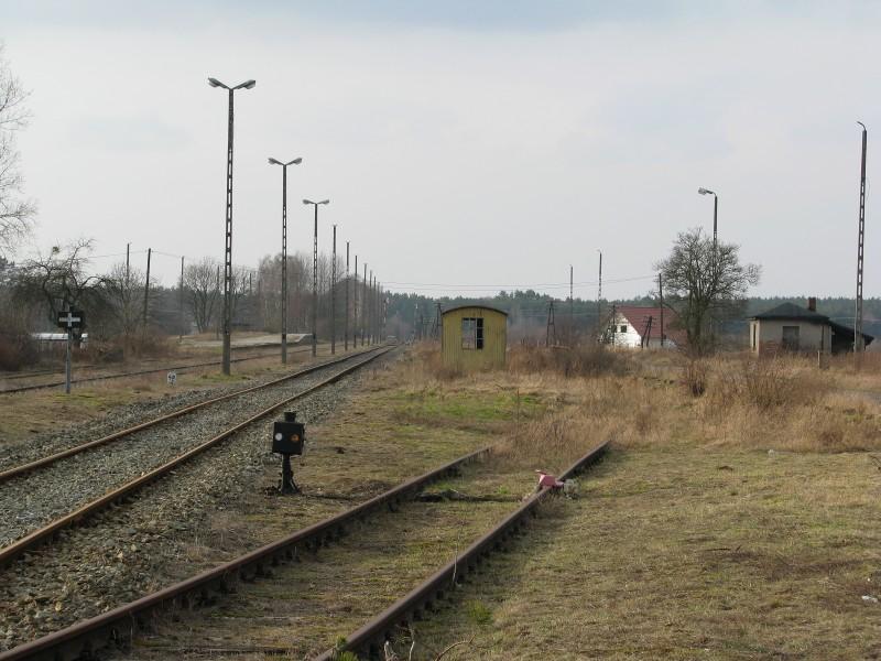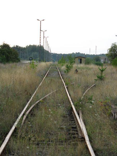 Widok na infrastrukturę stacyjną w kierunku Rzepina. Z lewej, w oddali, rampa służąca transportom wojskowym.