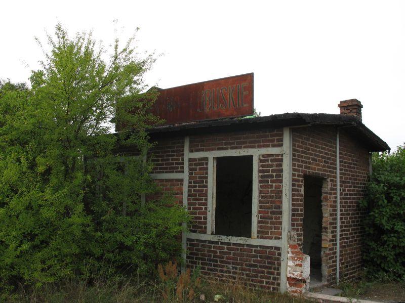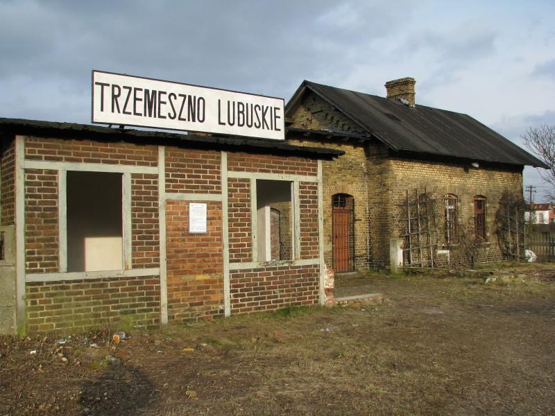 Trzemeszno lubuskie. Upadła stacja. Pusta, zarośnięta bzem. Niektóre budynki zdewastowane. Stoją semafory, bo jeden tor jest używany. Przypuszczam, że przez wojsko z pobliskiej jednostki. Dobija człowieka widok samotnie stojących na peronie latarni. Żal.