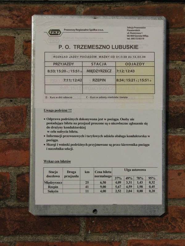 Aktualny (obowiązujący od 01.02.2008) rozkład jazdy dla p.o. Trzemeszno Lubuskie.