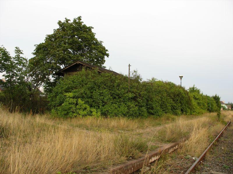 Za tą "zieleniną" budynek stacji kolejowej Trzemeszno Lubuskie (trochę wiary; -).