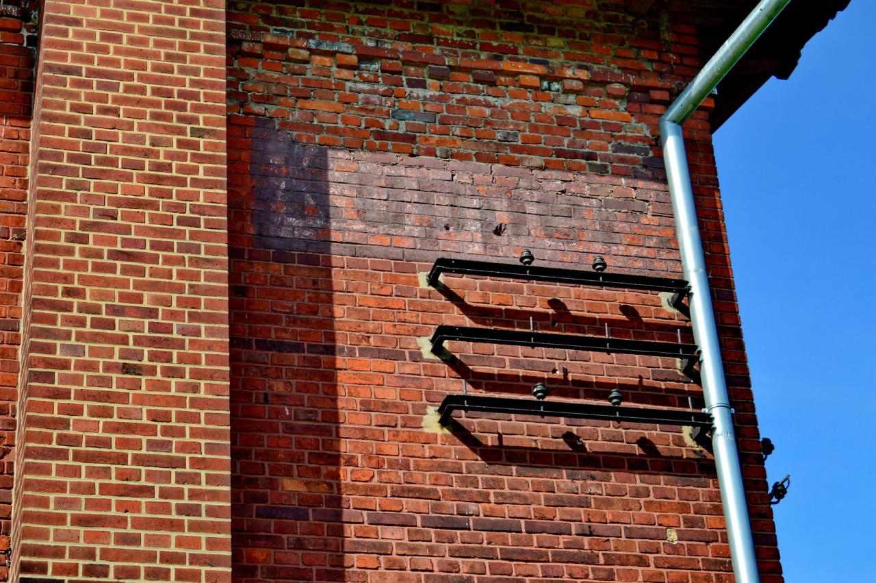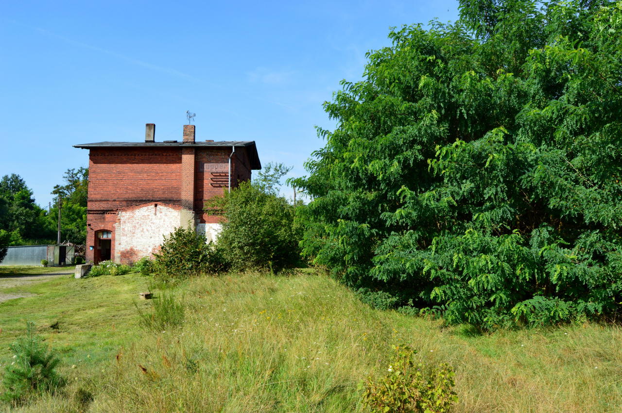 Zachowana pompa wodna, charakterystyczna dla dawnych dworców.