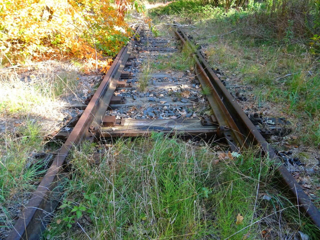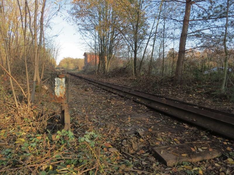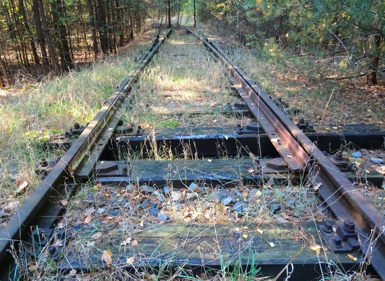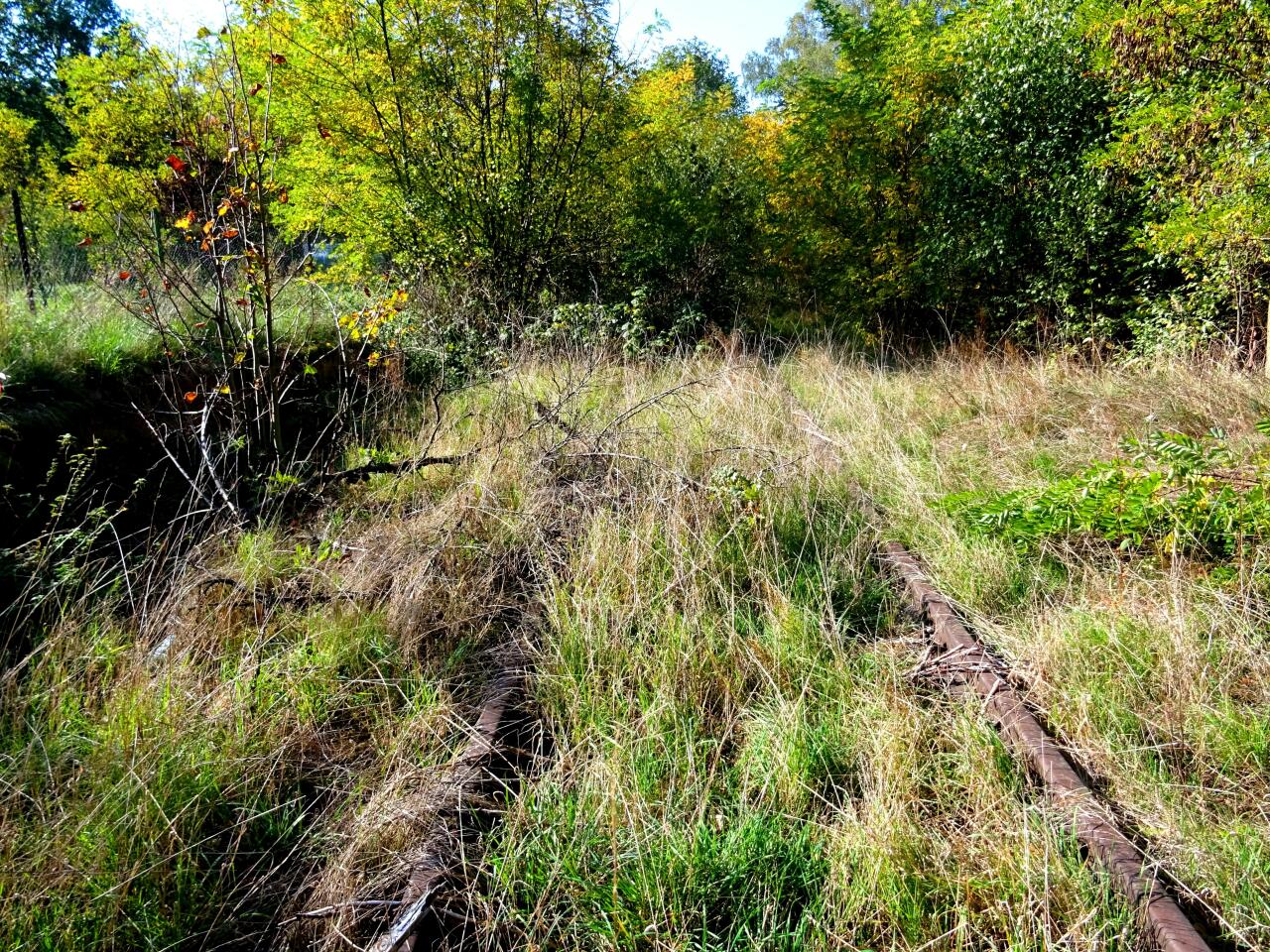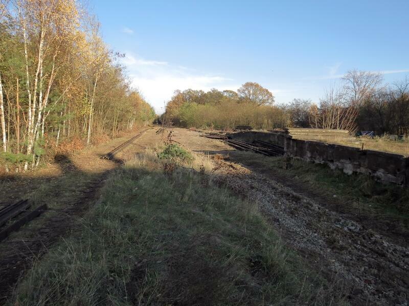 Widok w stronę Stypułowa i Kożuchowa. Tu była głowica stacyjna - widać prawdopodobnie resztki mechanizmu pierwszej zwrotnicy.