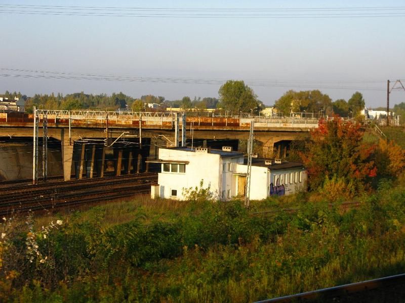 Warszawa Podskarbińska. Widok z pociągu na odcinku Warszawa Wschodnia-Warszawa Olszynka Grochowska.