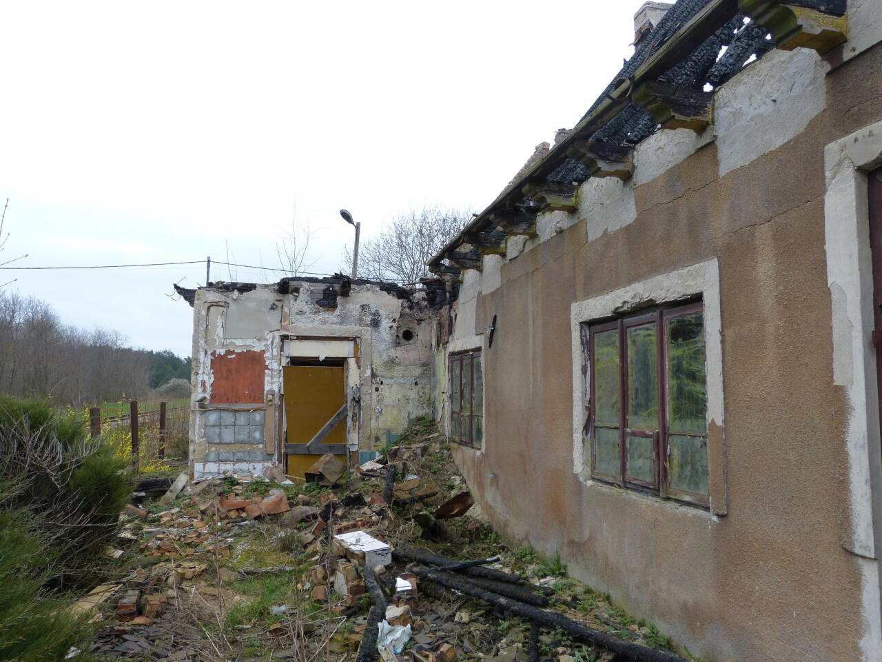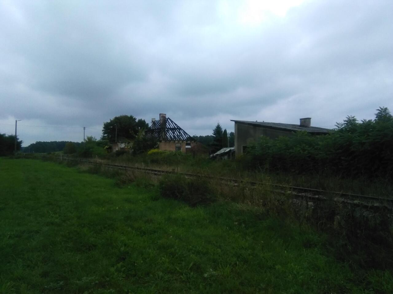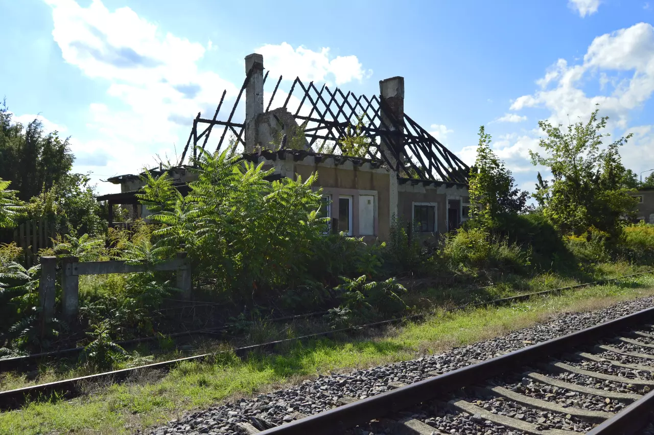 Postępująca degradacja dawnego budynku dworcowego po pożarze w roku 2021. Budynek jest całkowicie opuszczony i zdewastowany, wala się sporo zniszczonego, porzuconego mienia.