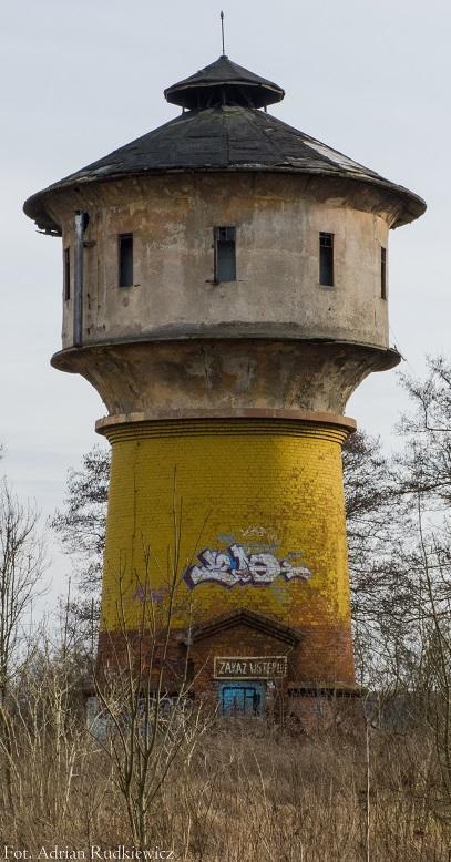 | wieża wodna: | Wieża wodna nadal stoi chociaż zdewastowana, zwłaszcza część zbiornikowa (inf. czerwiec 2016 B.Wojtyniak). | |