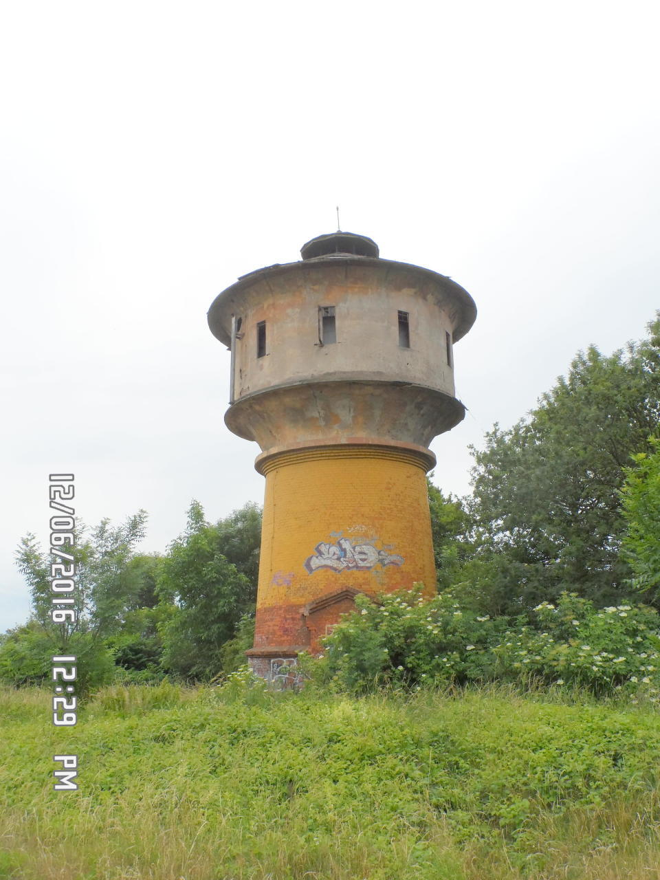| wieża wodna: | Wieża wodna nadal stoi chociaż zdewastowana, zwłaszcza część zbiornikowa (inf. czerwiec 2016 B.Wojtyniak). | |