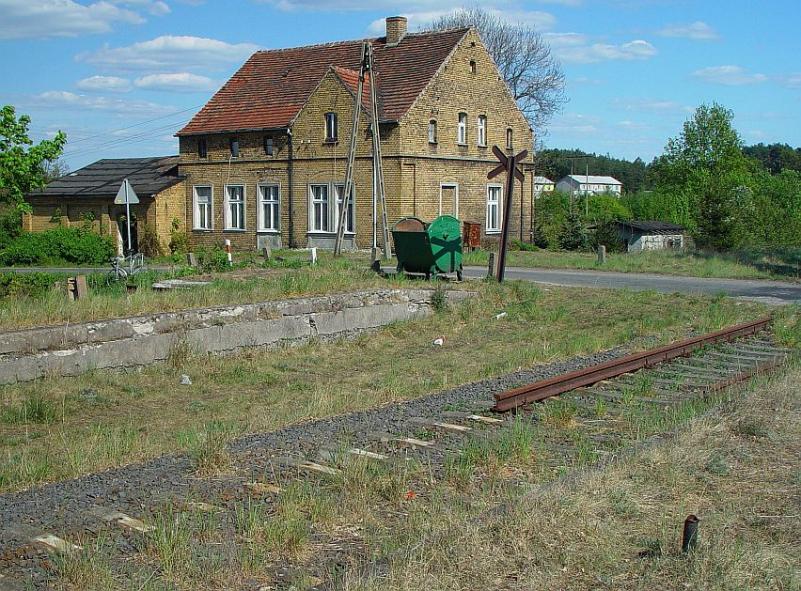 Opis ogólny: Zdjęcie budynku wykonane przez M. Olędzkiego przedstawia dom mieszkalny (Mierków 64) z przybudówką jako poczekalnią dla podróżnych - widok od ogrodu, z torowiska od strony Lubska. (info: Serg, 2007-06-17) Opis budynków: Przy przejeździe kolejowym znajduje się dom mieszkalny (Mierków 64) z murowaną przybudówką, oznaczoną tablicą "Poczekalnia", do użytku podróżnych. Całość wykonana z charakterystycznej miejscowej cegły. Dom najprawdopodobniej nie był obiektem kolejowym, a pełnił funkcje mieszkalno-gospodarcze dróżnika (pracowników kolejowych). (info: Serg, 2007-06-17) |