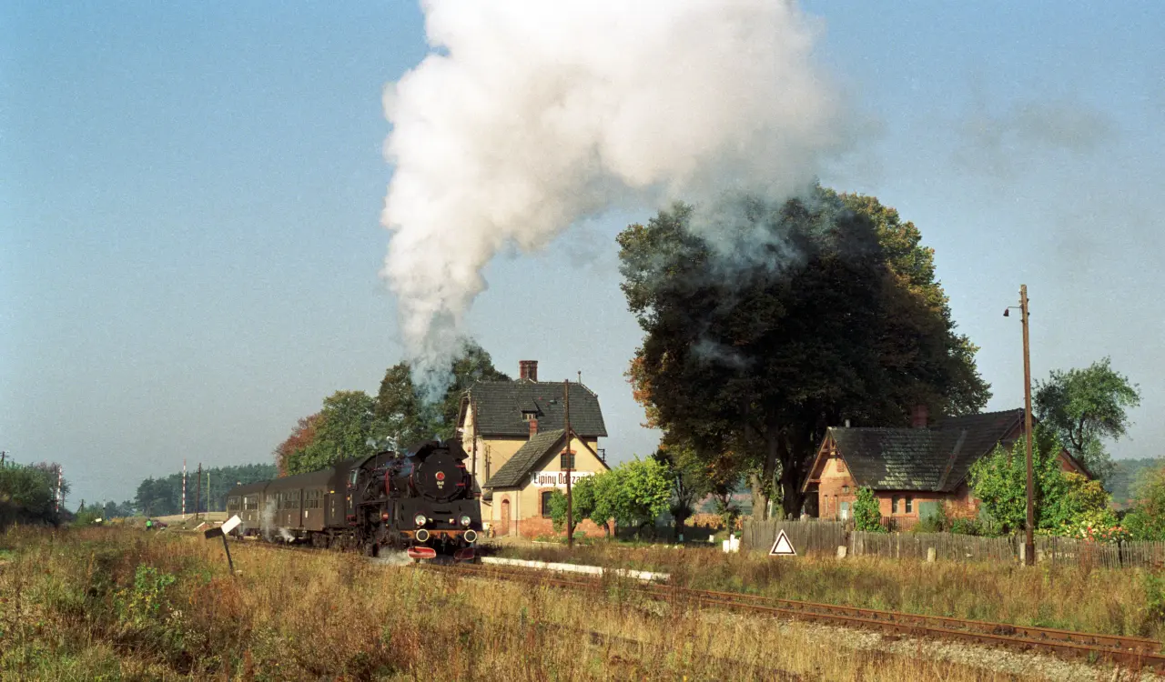 Zachodnia głowica zamkniętej dla czynności ruchowych stacji Lipiny Odrzańskie. Z lewej strony rampa. W tle kopci Ol49 ze składem osobowy z Nowej Soli do Wolsztyna. Wjazd od strony wjazdu z Nowej Soli.