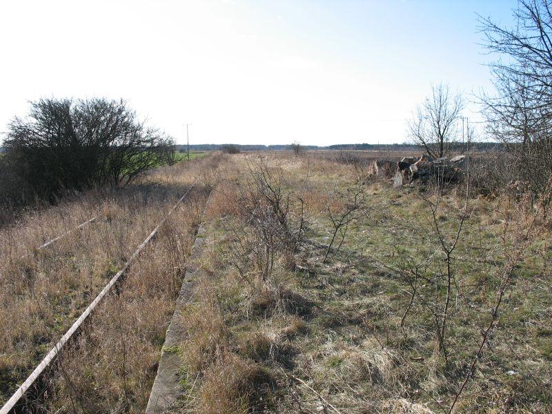 | 2008-02-17: Przystanek znajduje się wśród pól, ok 1,5km od wsi Bobrowniki. Poza słupkiem kilometrażowym 43.5 nie zachowały się żadne oznaczenia kolejowe. Szyny pozbawione mocowań; rok produkcji szyn - 1984. Podkłady strunobetonowe. (info: Przemek Bernat). |