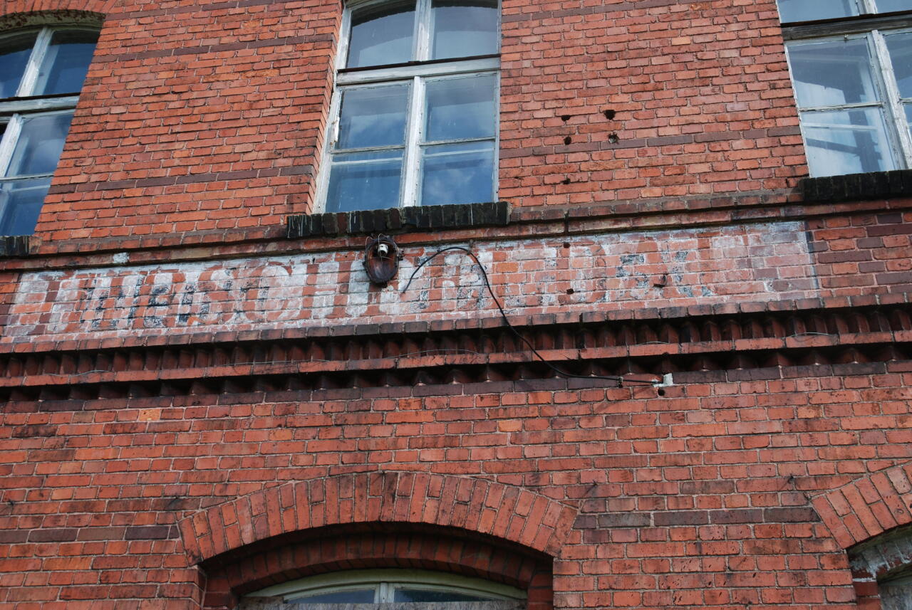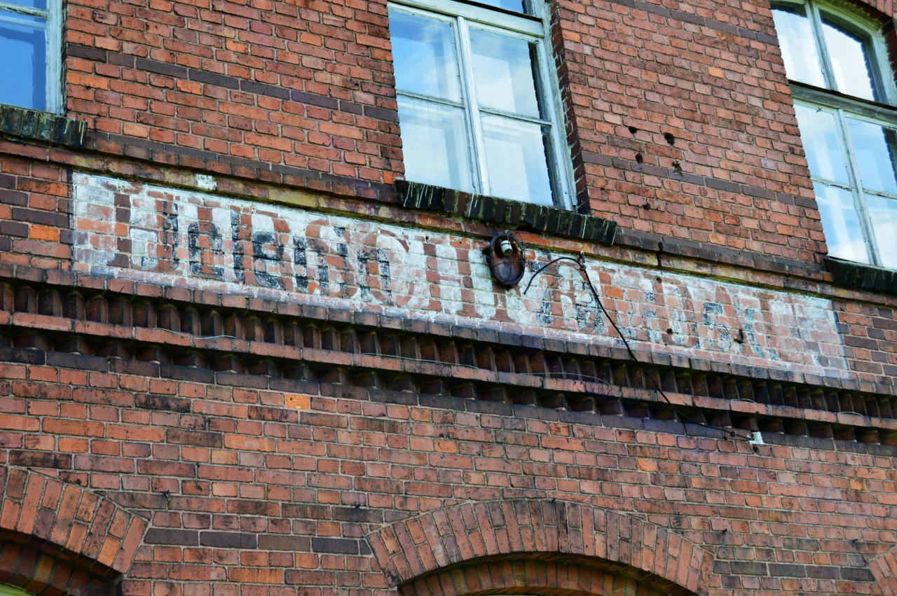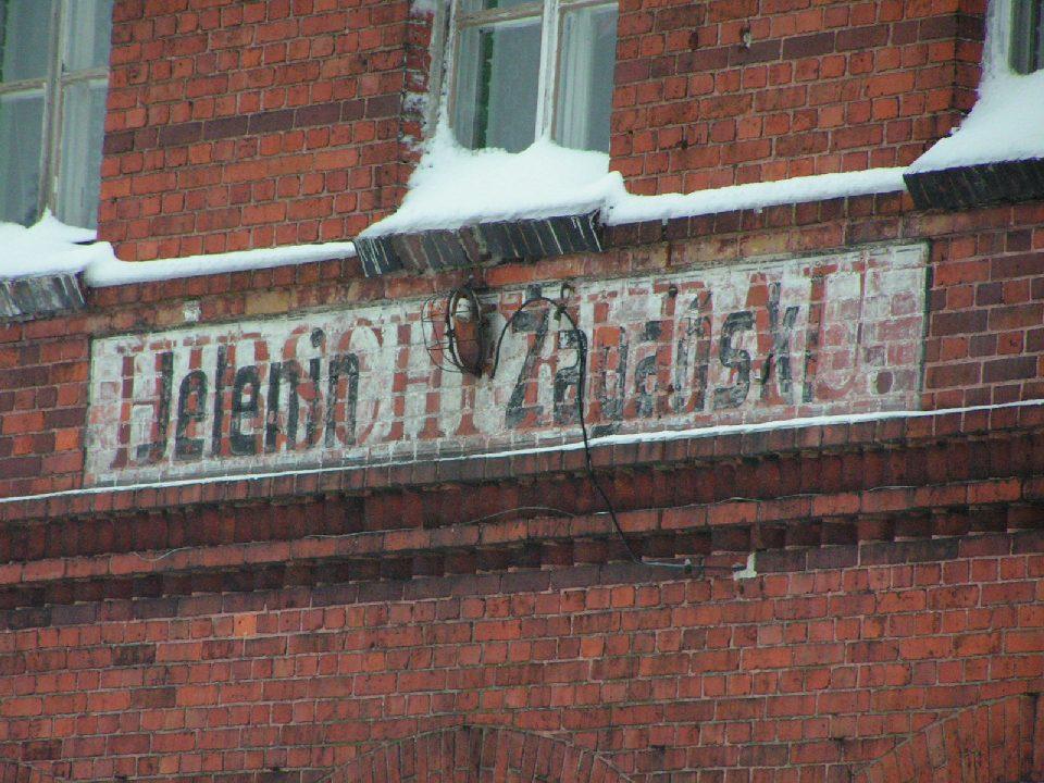 Przebijający napis Hirshfeldau budynku dworca.