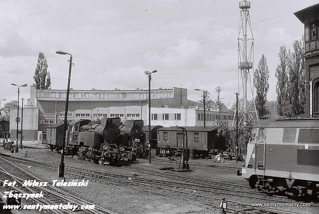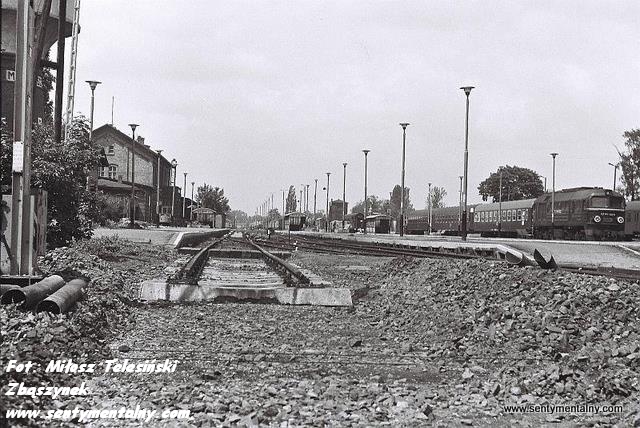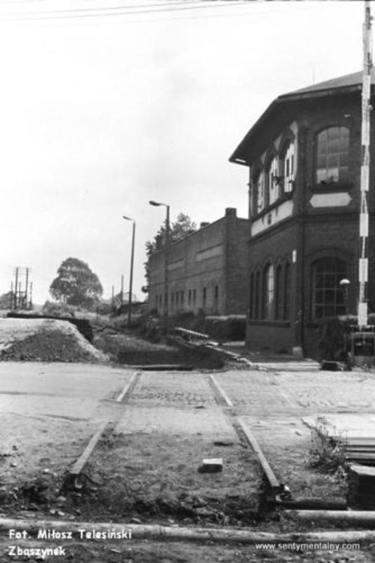 Widzimy tutaj zburzony budynek, w miejsce którego stanął nowy służący już krótko rewidentom, niegdyś tu nie zbędnym. Po prawej stronie fragment SM30, która przyprowadziła pociąg z Toporowa.