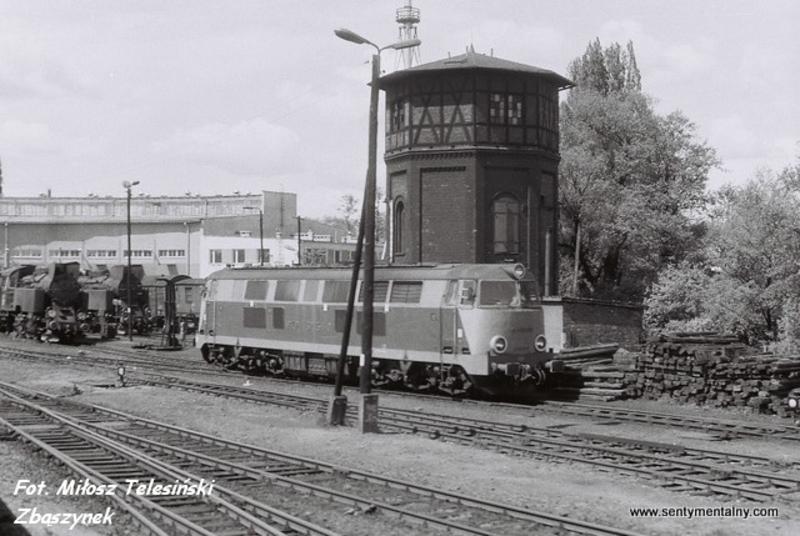 Międzyrzecz. Widok fragmentu dworca w stronę Zbąszynka. Stojąca SP45 z wagonami szykuje się do odjazdu w kierunku Wierzbna (Międzychodu). SP45 po lewej to 254. Cdn.