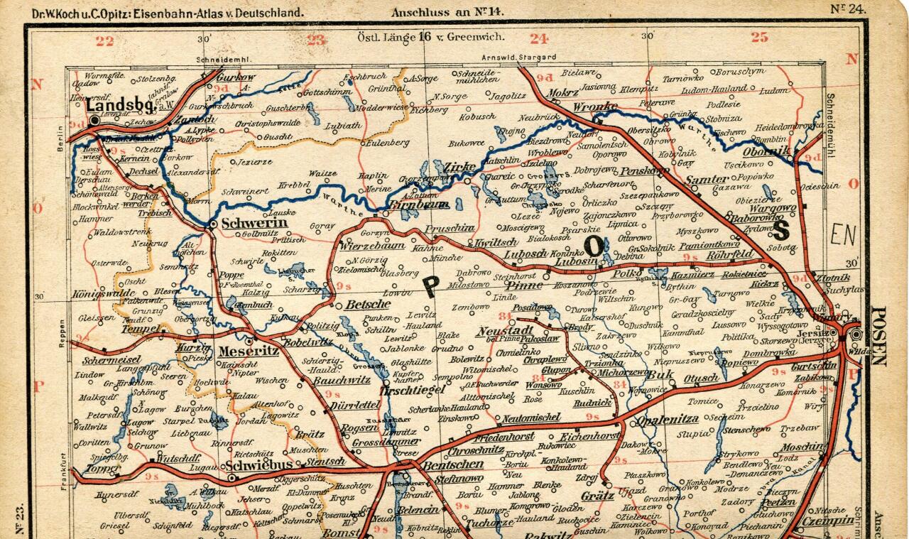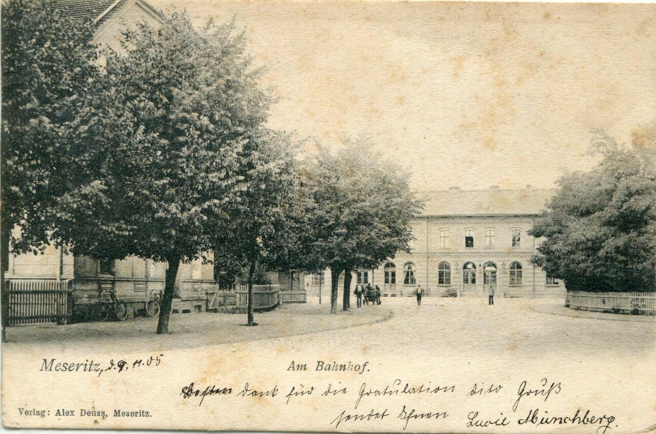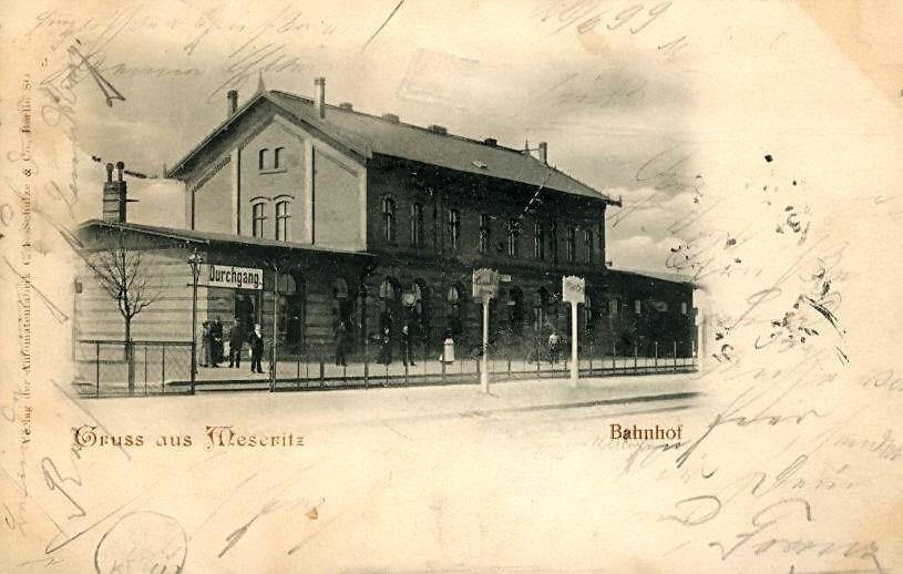 Stacja Międzyrzecz - pocztówka z 1900r. Widok w kierunku Rzepina i Skwierzyny.