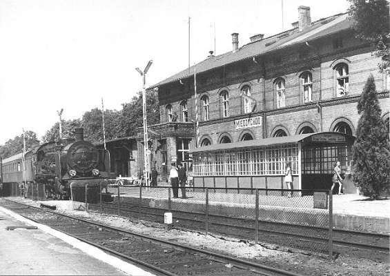 Widok na perony i budynek dworca w kierunku zachodnim: Wierzbno (dalej Międzyrzecz, Skwierzyna). Na parterze dworca mieściła się nastawnia dysponująca. Ze zbiorów Miłosza Telesińskiego