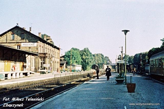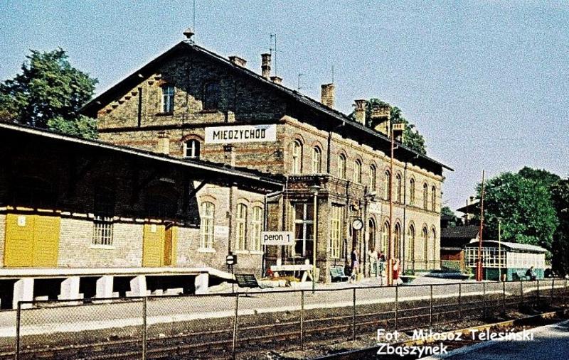 Dnia 03.10.1987 zorganizowałem przejazd specjalny trasą Zbąszynek-Międzyrzecz-Międzychód-Skwierzyna-Wierzbno-Międzyrzecz-Zbąszynek. Były to imprezy nie komercyjne i całkiem za darmo. Zdjęcie wykonałem na rosyjskim "kolorowym" filmie dzięki czemu mamy wzmiankę barwy. Pierwszy raz w Międzychodzie byłem jesienią 1986 roku. Z lewej magazyn towarowy i budynek dworca. Na parterze dworca mieściła się nastawnia dysponująca. Widok w kierunku wschodnim, od strony wjazdu z Wierzbna (dalej Międzyrzecz, Skwierzyna).