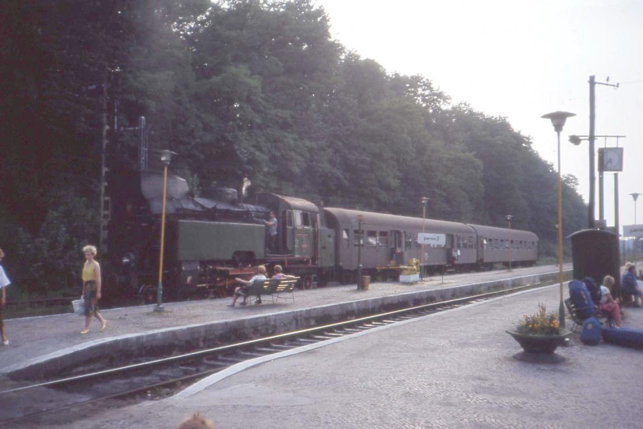 Stacja Międzychód, peron 2. Podczas przejazdy specjalnego (Zbąszynek - Międzyrzecz - Wierzbno - Międzychód - Skwierzyna - Międzyrzecz - Zbąszynek) w dniu 03.10.1987 roku. Więcej o przejeździe na mojej stronie, w dziale Zbąszynek. Widok w kierunku wschodnim, od strony wjazdu z Wierzbna (dalej Międzyrzecz, Skwierzyna).