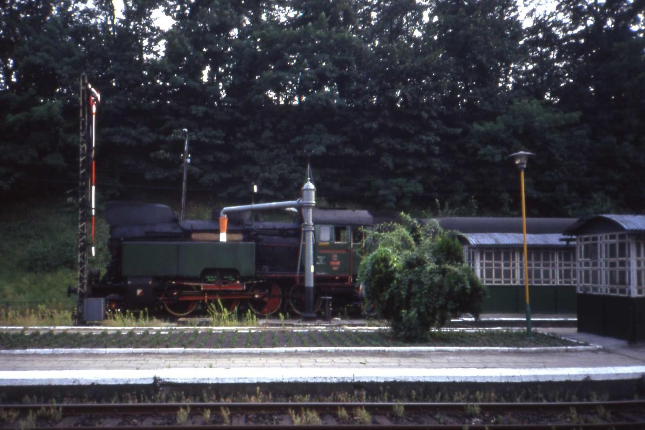 Stacja Międzychód. Z prawej peron 3, z lewej peron 2. Poza kadrem, z lewej budynek dworca. Podczas przejazdy specjalnego (Zbąszynek - Międzyrzecz - Wierzbno - Międzychód - Skwierzyna Międzyrzecz - Zbąszynek) w dniu 03.10.1987 roku. Więcej o przejeździe na mojej stronie w dziale Zbąszynek. Widok w kierunku wschodnim, od strony wjazdu z Wierzbna (dalej Międzyrzecz, Skwierzyna).