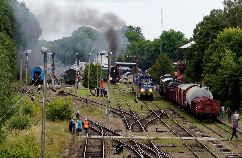 Węzeł Międzychód podczas II Parady Lokomotyw w Międzychodzie. Widok w kierunku zachodnim, od strony wjazdów z Rokietnicy, Szamotuł i Zbąszynia.